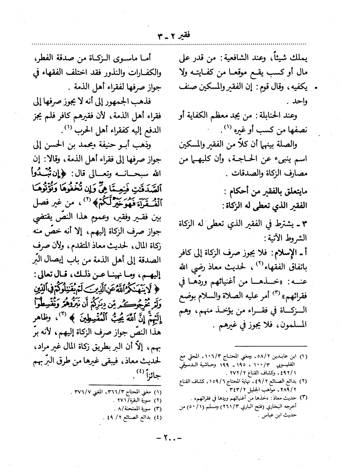 3 - يُشْتَرَطُ فِي الْفَقِيرِ الَّذِي تُعْطَى لَهُ الزَّكَاةُ الشُّرُوطُ الآْتِيَةُ:
