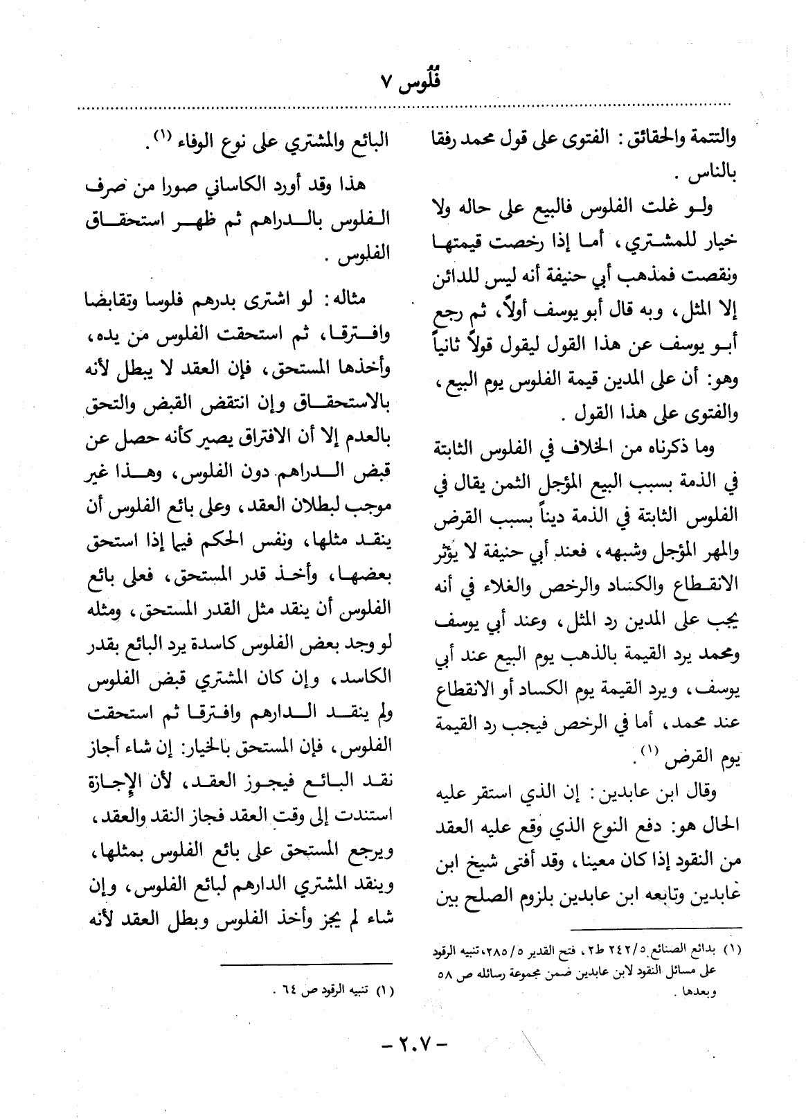 (1) بدائع الصنائع 5 / 242 ط2، فتح القدير 5 / 285، تنبيه الرقود على مسائل النقود لابن عابدين ضمن مجموعة رسائله ص58 وبعدها.