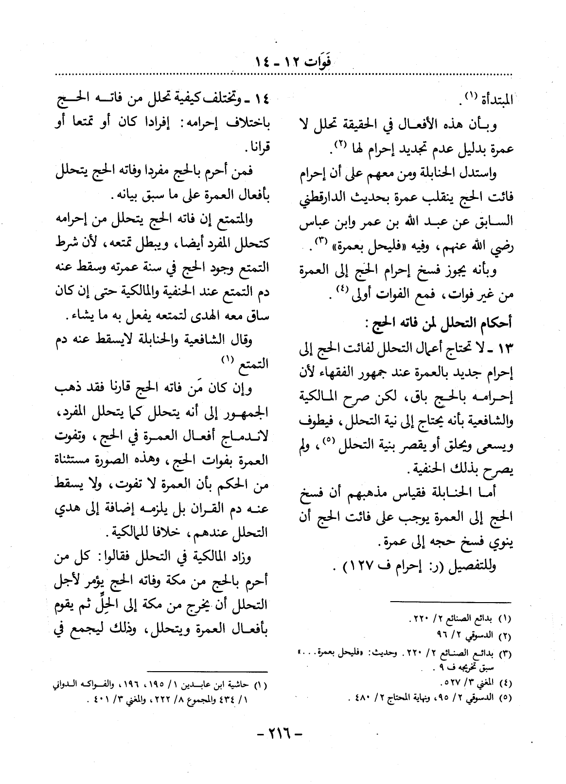 (3) بدائع الصنائع 2 / 220، وحديث: " فليحل بعمرة. . . " سبق تخريجه ف9.