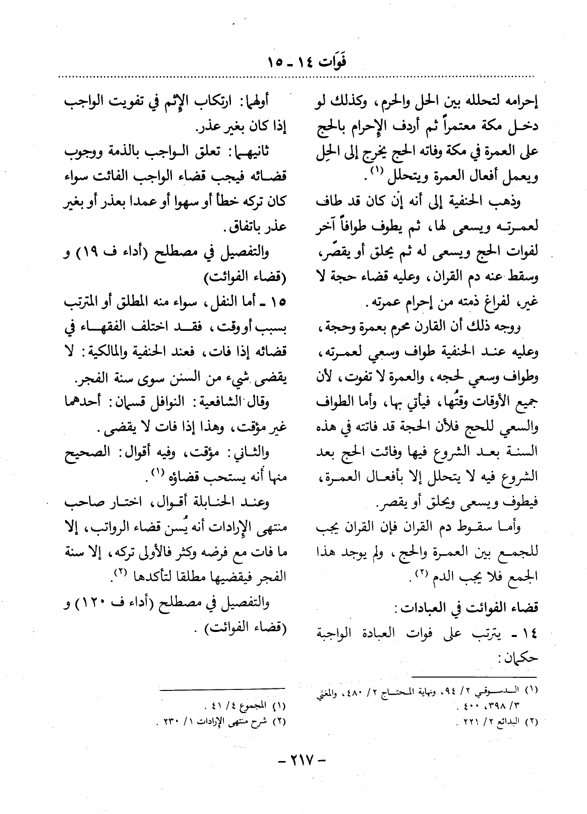 قَضَاءُ الْفَوَائِتِ فِي الْعِبَادَاتِ: