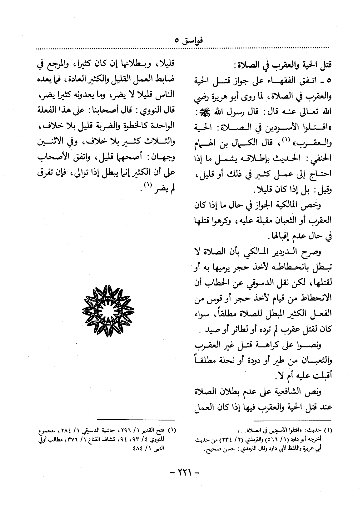 (1) حديث: " اقتلوا الأسودين في الصلاة. . . " أخرجه أبو داود (1 / 566) والترمذي (2 / 234) من حديث أبي هريرة واللفظ لأبي داود وقال الترمذي: حسن صحيح.