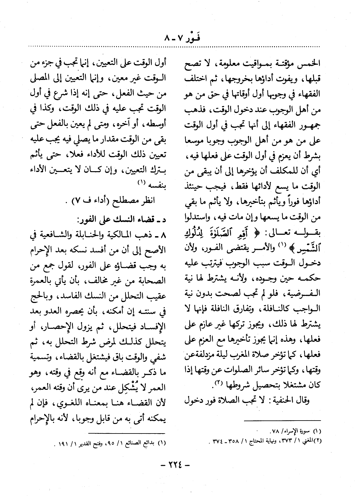 (2) المغني 1 / 373، ونهاية المحتاج 1 / 358 - 374.