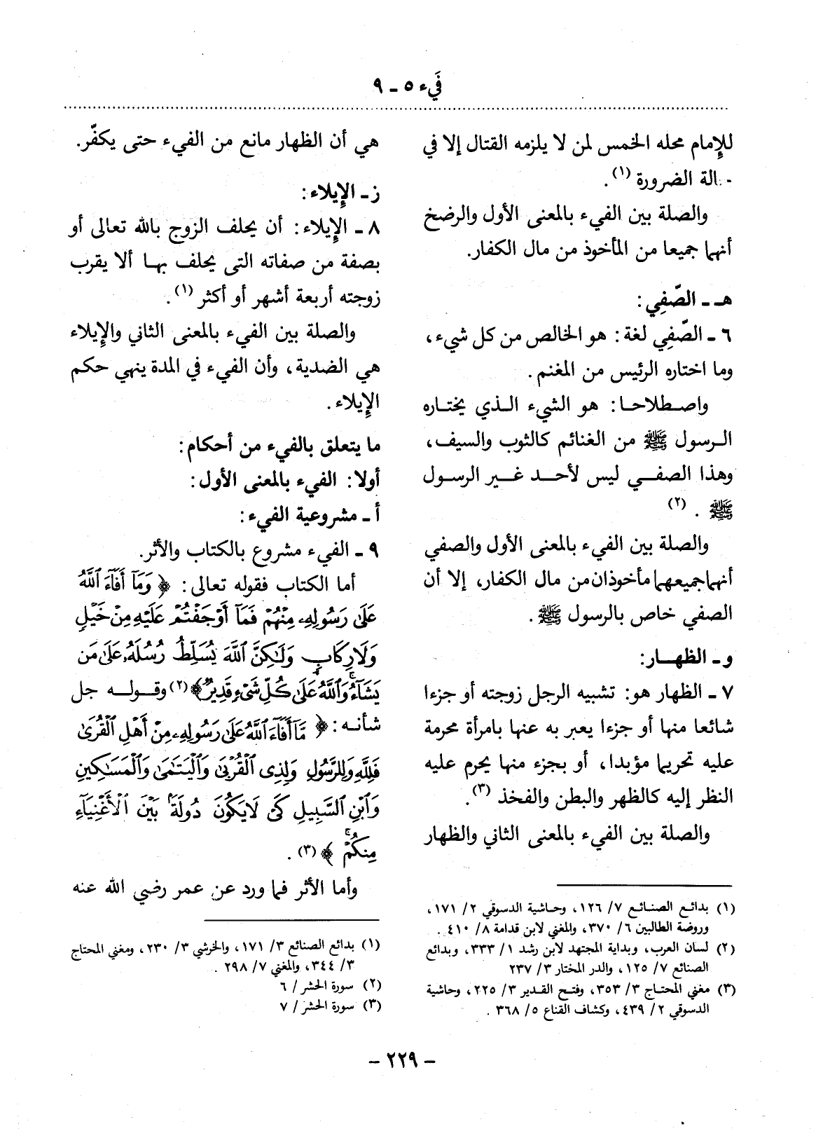 9 - الْفَيْءُ مَشْرُوعٌ بِالْكِتَابِ وَالأَْثَرِ.