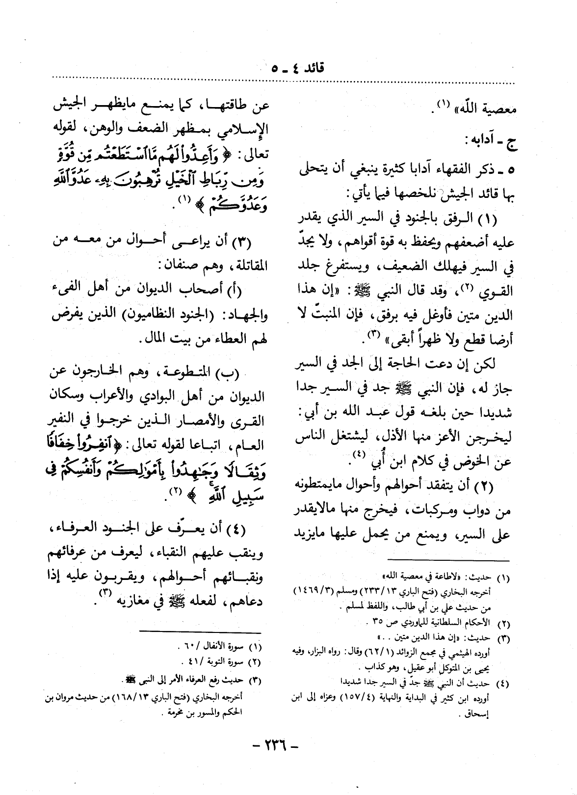 5 - ذَكَرَ الْفُقَهَاءُ آدَابًا كَثِيرَةً يَنْبَغِي أَنْ يَتَحَلَّى بِهَا قَائِدُ الْجَيْشِ نُلَخِّصُهَا فِيمَا يَأْتِي:
