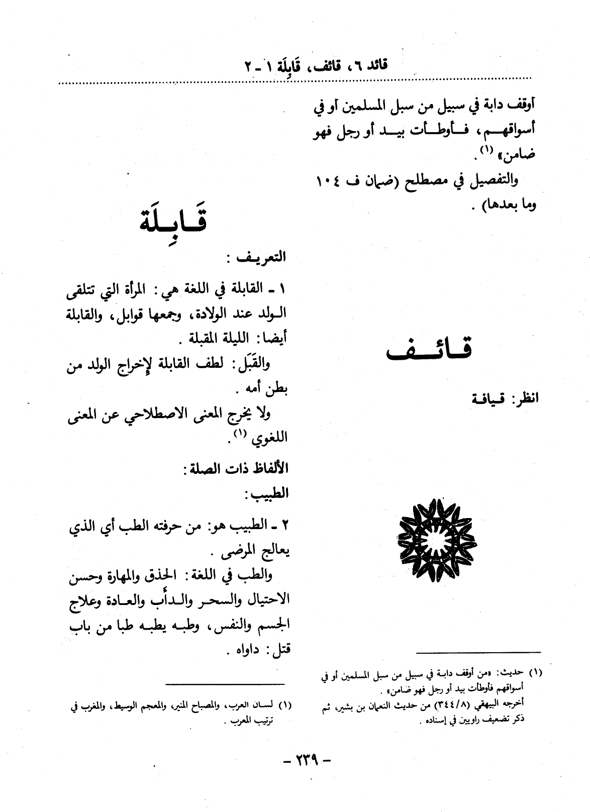1 - الْقَابِلَةُ فِي اللُّغَةِ هِيَ: الْمَرْأَةُ الَّتِي تَتَلَقَّى الْوَلَدَ عِنْدَ الْوِلاَدَةِ، وَجَمْعُهَا قَوَابِل، وَالْقَابِلَةُ أَيْضًا: اللَّيْلَةُ الْمُقْبِلَةُ. وَالْقَبَل: لُطْفُ الْقَابِلَةِ لإِِخْرَاجِ الْوَلَدِ مِنْ بَطْنِ أُمِّهِ.