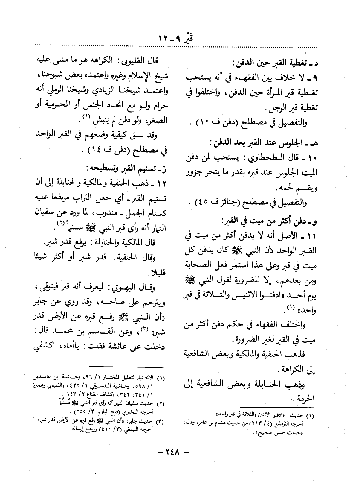 و دَفْنُ أَكْثَرَ مِنْ مَيِّتٍ فِي الْقَبْرِ: