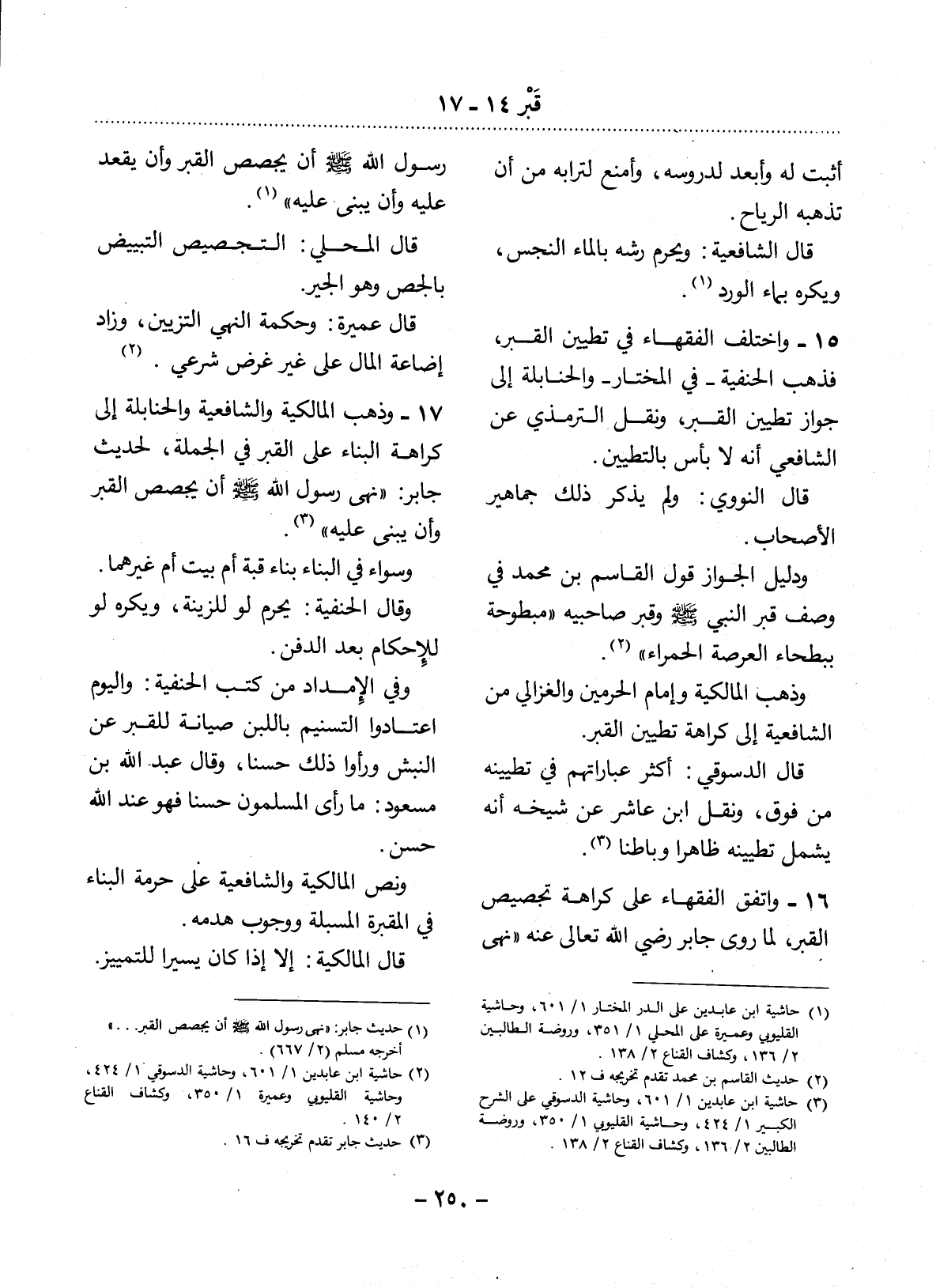 (1) حديث جابر: " نهى رسول الله صلى الله عليه وسلم أن يجصص القبر. . . ". أخرجه مسلم (2 / 667) .