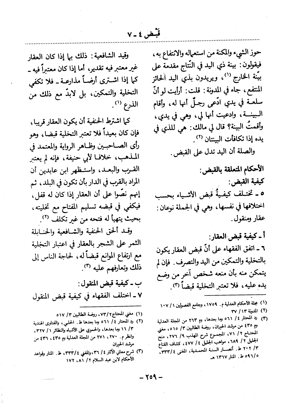 (2) رد المحتار 4 / 561 وما بعدها ط. الحلبي، والفتاوى الهندية 3 / 16 وما بعدها، والحموي على الأشباه والنظائر 1 / 327، وانظر م 270، 271، من المجلة العدلية، وم 435، 436 من مرشد الحيران.