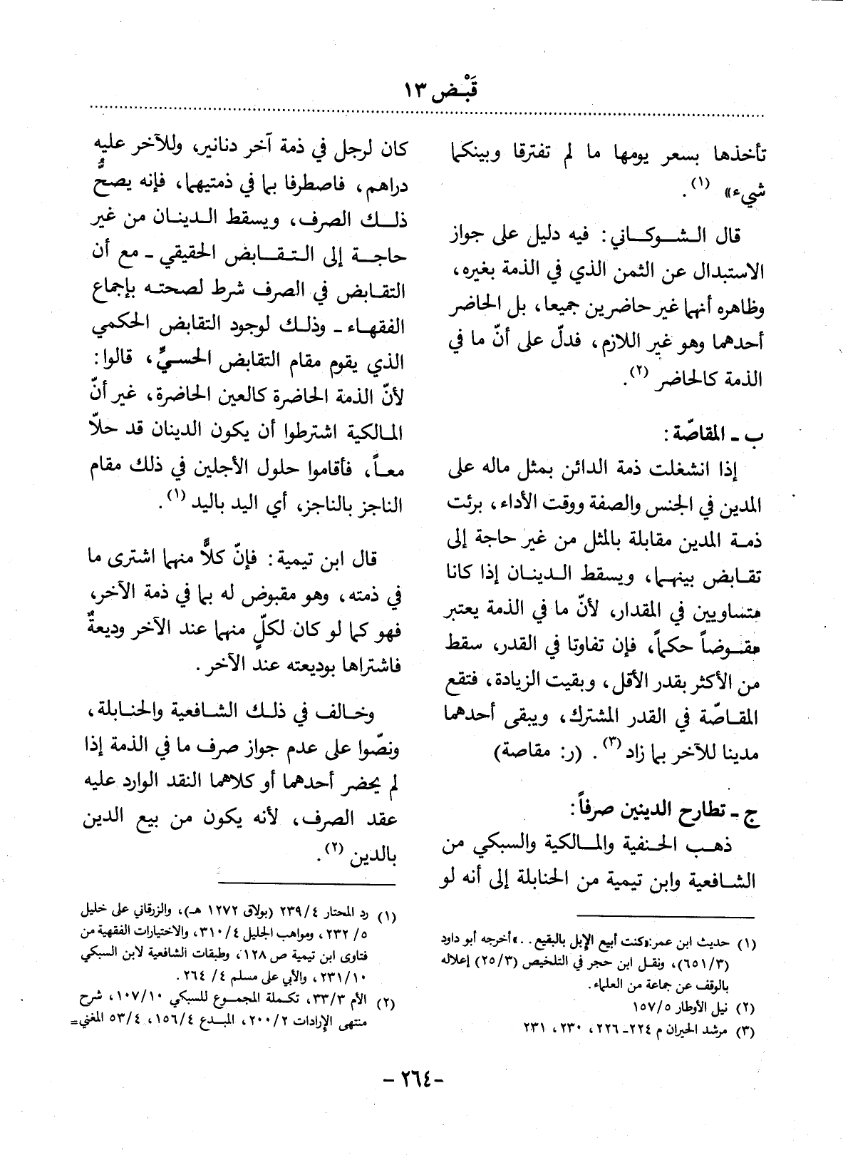 ج - تَطَارُحُ الدَّيْنَيْنِ صَرْفًا: