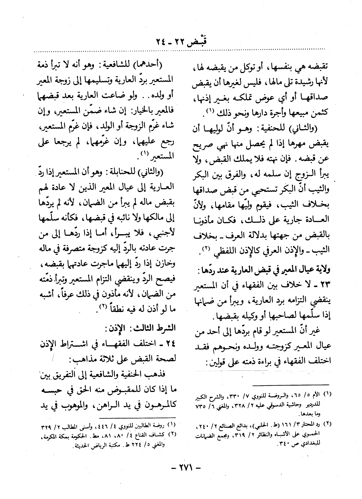 (2) رد المحتار 3 / 161 (ط. الحلبي) ، بدائع الصنائع 2 / 240، الحموي على الأشباه والنظائر 2 / 319، ومجمع الضمانات للبغدادي ص 340.