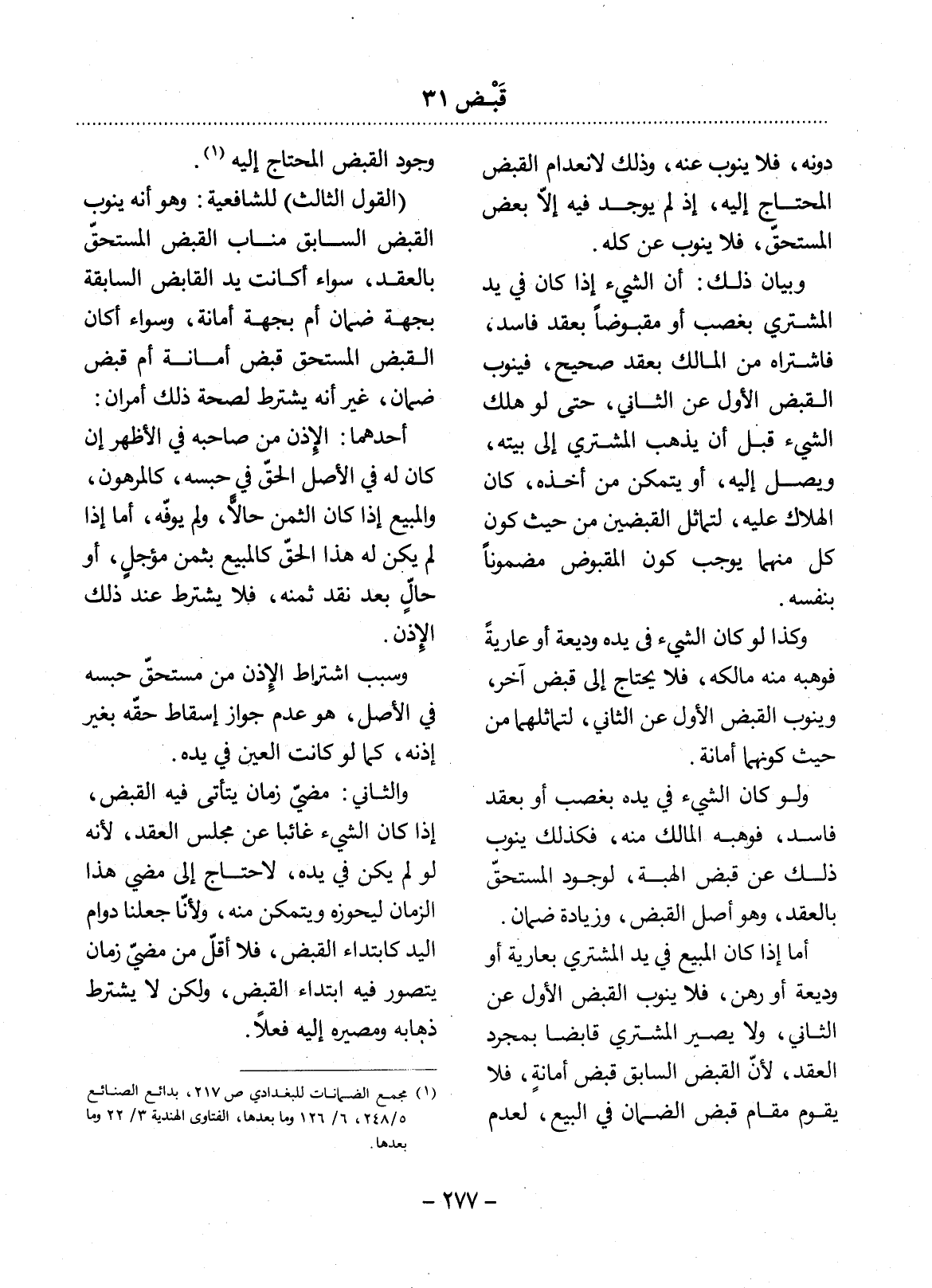 وُجُودِ الْقَبْضِ الْمُحْتَاجِ إلَيْهِ (1) .