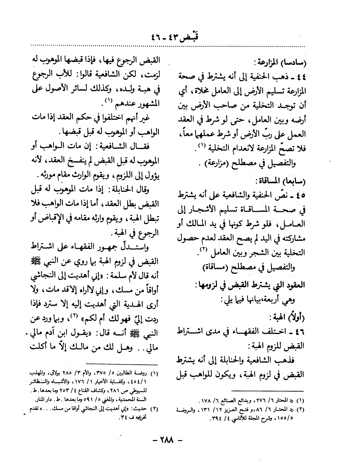 (2) رد المحتار 6 / 86، وفتح العزيز 12 / 131، والروضة 5 / 155، وشرح المجلة للأتاسي 4 / 394.