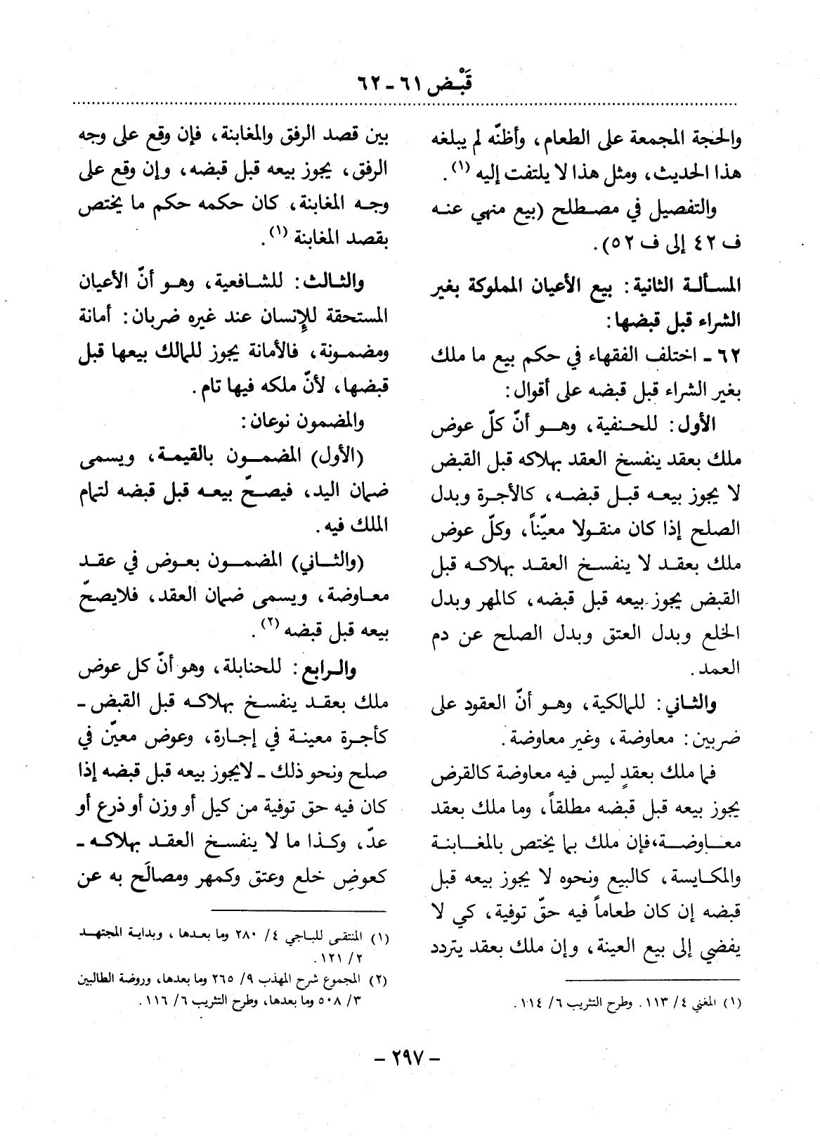 (1) المنتقى للباجي 4 / 280 وما بعدها، وبداية المجتهد 2 / 121.