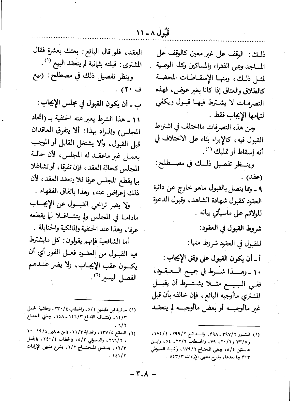 10 - وَهَذَا شَرْطٌ فِي جَمِيعِ الْعُقُودِ، فَفِي الْبَيْعِ مَثَلاً يُشْتَرَطُ أَنْ يَقْبَل الْمُشْتَرِي مَا أَوْجَبَهُ الْبَائِعُ، فَإِنْ خَالَفَهُ بِأَنْ قَبِل غَيْرَ مَا أَوْجَبَهُ أَوْ بَعْضَ مَا أَوْجَبَهُ لَمْ يَنْعَقِدِ