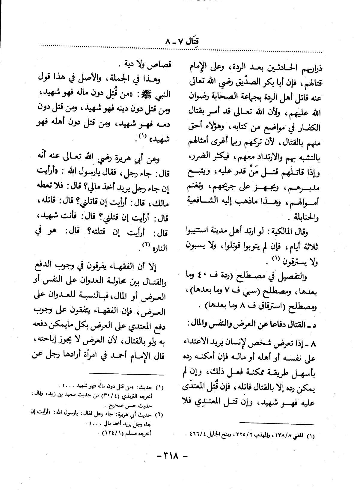 (1) حديث: " من قتل دون ماله فهو شهيد. . . ". أخرجه الترمذي (4 / 30) من حديث سعيد بن زيد، وقال: حديث حسن صحيح.