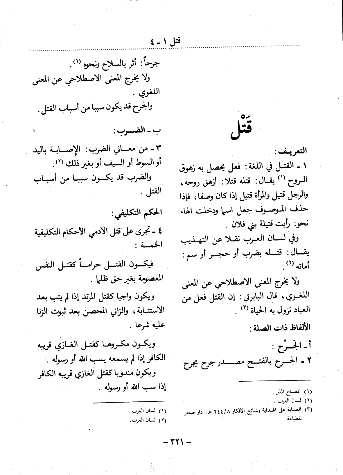 وَلاَ يَخْرُجُ الْمَعْنَى الاِصْطِلاَحِيُّ عَنِ الْمَعْنَى اللُّغَوِيِّ، قَال الْبَابَرْتِيُّ: إنَّ الْقَتْل فِعْلٌ مِنَ الْعِبَادِ تَزُول بِهِ الْحَيَاةُ (3) .