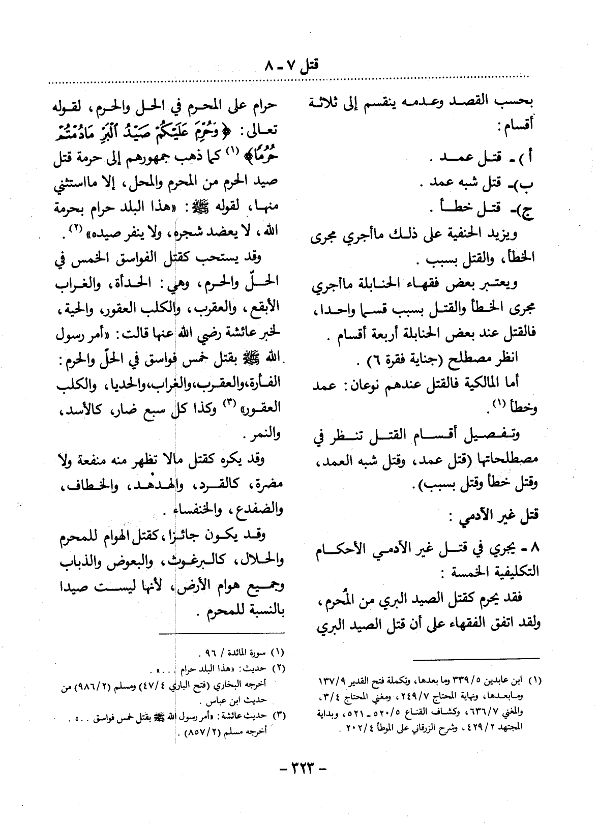 8 - يَجْرِي فِي قَتْل غَيْرِ الآْدَمِيِّ الأَْحْكَامُ التَّكْلِيفِيَّةُ الْخَمْسَةُ:
