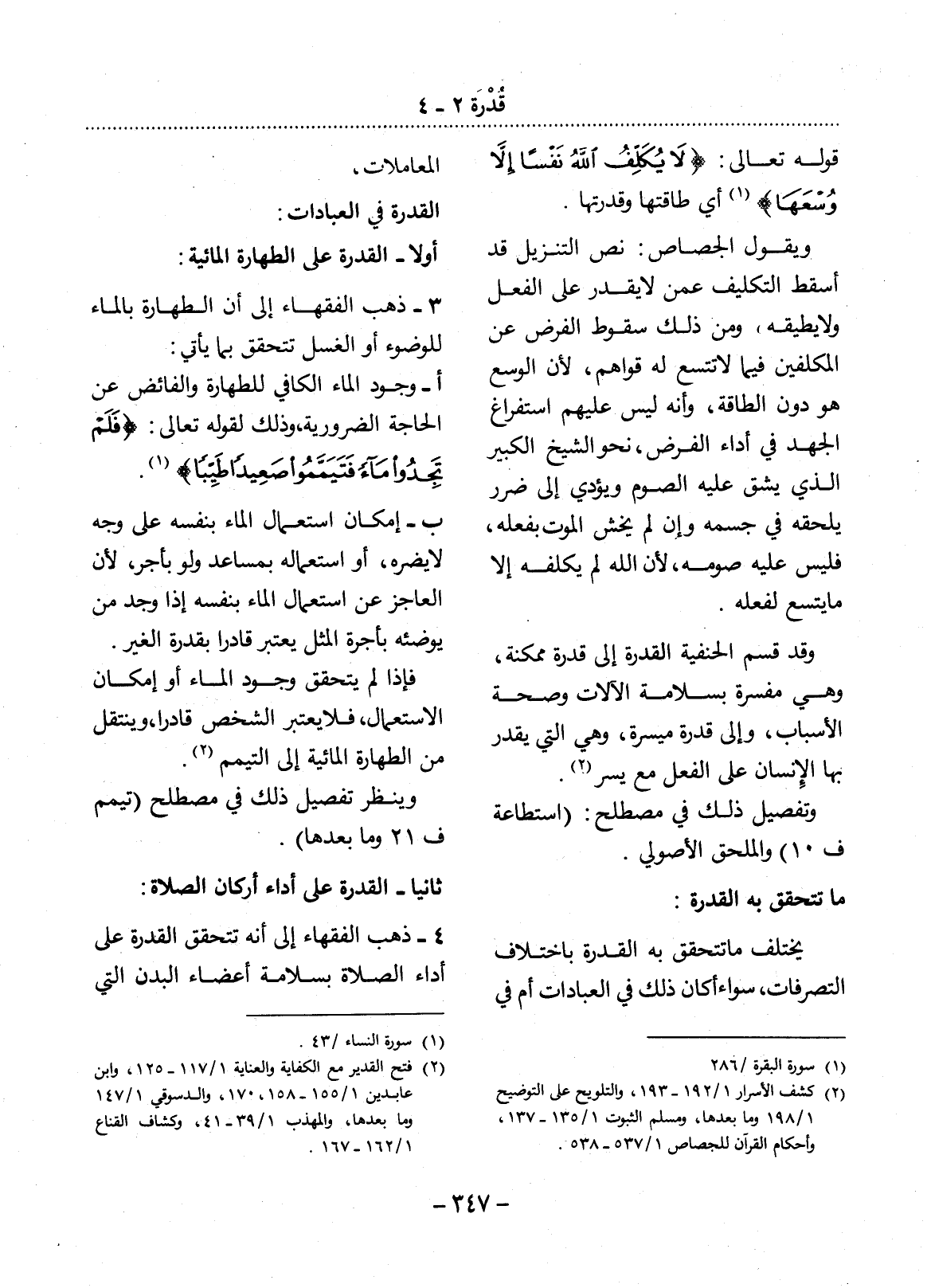 الْقُدْرَةُ فِي الْعِبَادَاتِ: