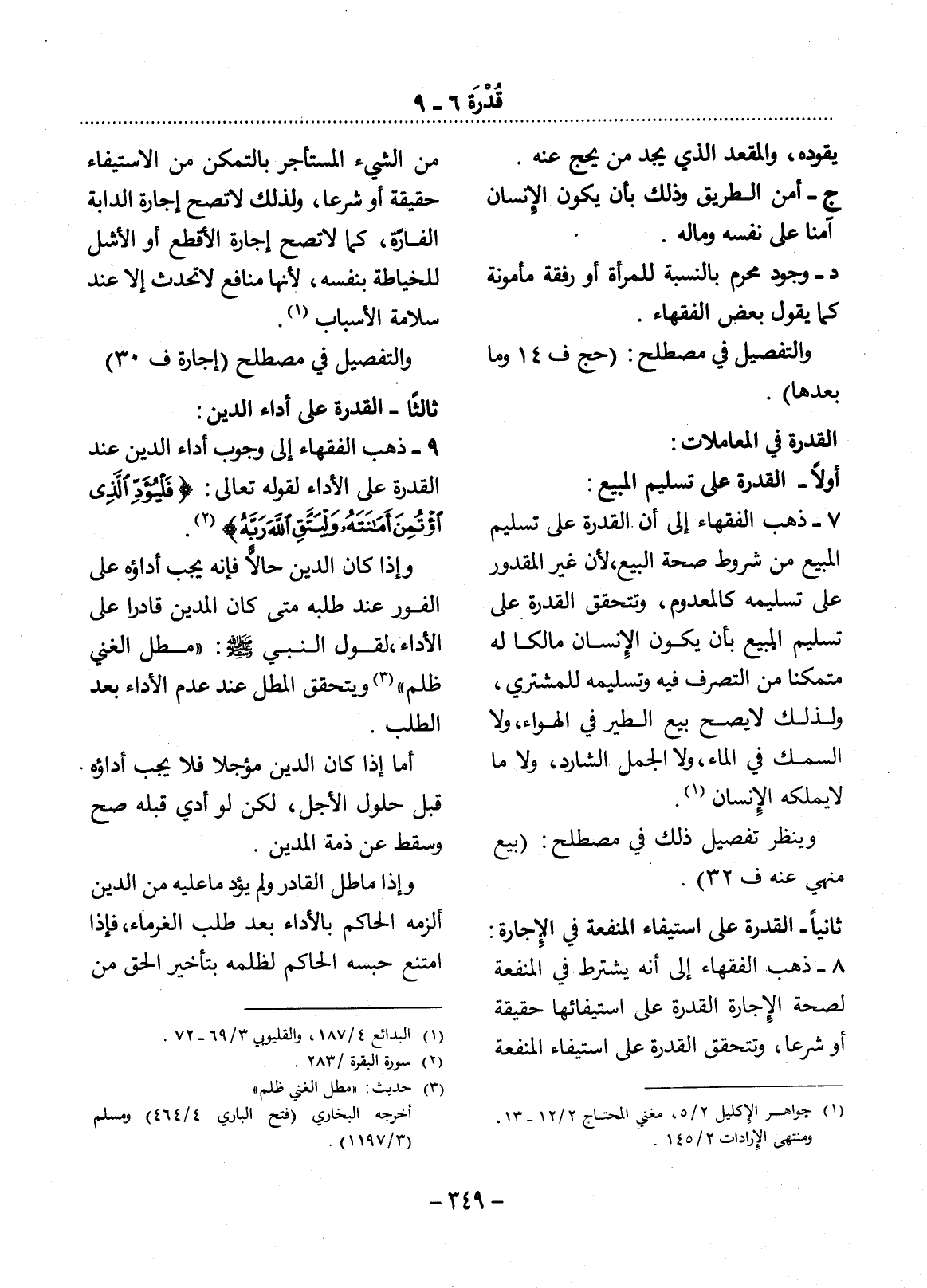 الْقُدْرَةُ فِي الْمُعَامَلاَتِ: