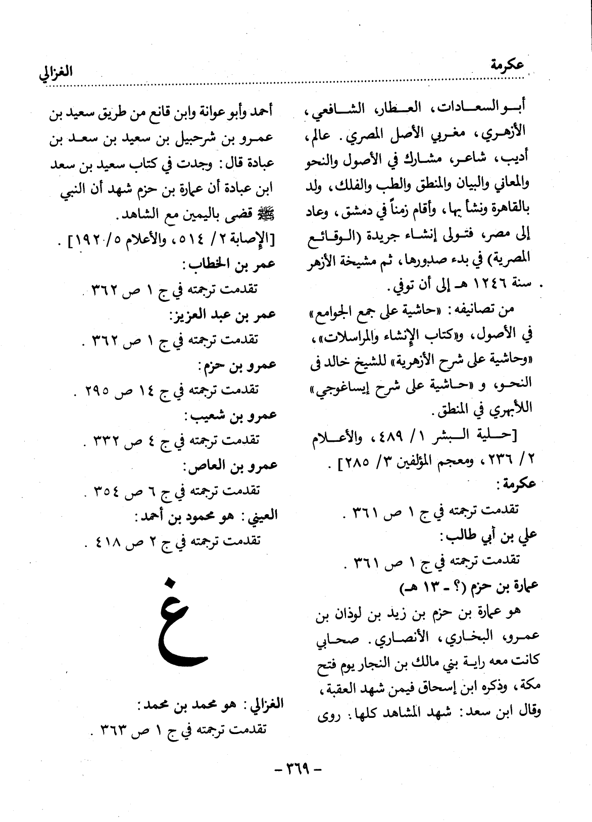 أبو السعادات، العطار، الشافعي، الأزهري، مغربي الأصل المصري. عالم، أديب، شاعر، مشارك في الأصول والنحو والمعاني والبيان والمنطق والطب والفلك، ولد بالقاهرة ونشأ بها، وأقام زمنا في دمشق، وعاد إلى مصر، فتولى إنشاء جريدة (الوقائع المصرية) في بدء صدورها، ثم مشيخة الأزهر سنة 1246 هـ إلى أن توفي. من تصانيفه: " حاشية على جمع الجوامع " في الأصول، و " كتاب الإنشاء والمراسلات "، و " حاشية على شرح الأزهرية " للشيخ خالد في النحو، و " حاشية على شرح إيساغوجي " اللأبهري في المنطق. [حلية البشر 1 / 489، والأعلام 2 / 236، ومعجم المؤلفين 3 / 285] .