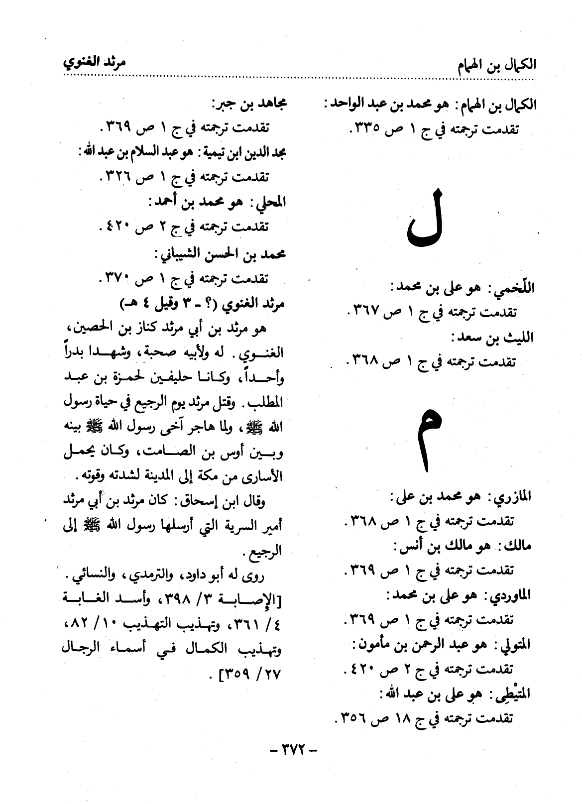 هو مرثد بن أبي مرثد كناز بن الحصين، الغنوي. له ولأبيه صحبة، وشهدا بدرا وأحدا، وكانا حليفين لحمزة بن عبد المطلب. وقتل مرثد يوم الرجيع في حياة رسول صلى الله عليه وسلم، ولما هاجر آخى رسول الله صلى الله عليه وسلم بينه وبين أوس بن الصامت، وكان يحمل الأسارى من مكة إلى المدينة لشدته وقوته. وقال ابن إسحاق: كان مرثد بن أبي مرثد أمير السرية التي أرسلها رسول الله صلى الله عليه وسلم إلى الرجيع. روى له أبو داود، والترمذي، والنسائي. [الإصابة 3 / 398، وأسد الغابة 4 / 361، وتهذيب التهذيب 10 / 82، وتهذيب الكمال في أسماء الرجال 27 / 359] .