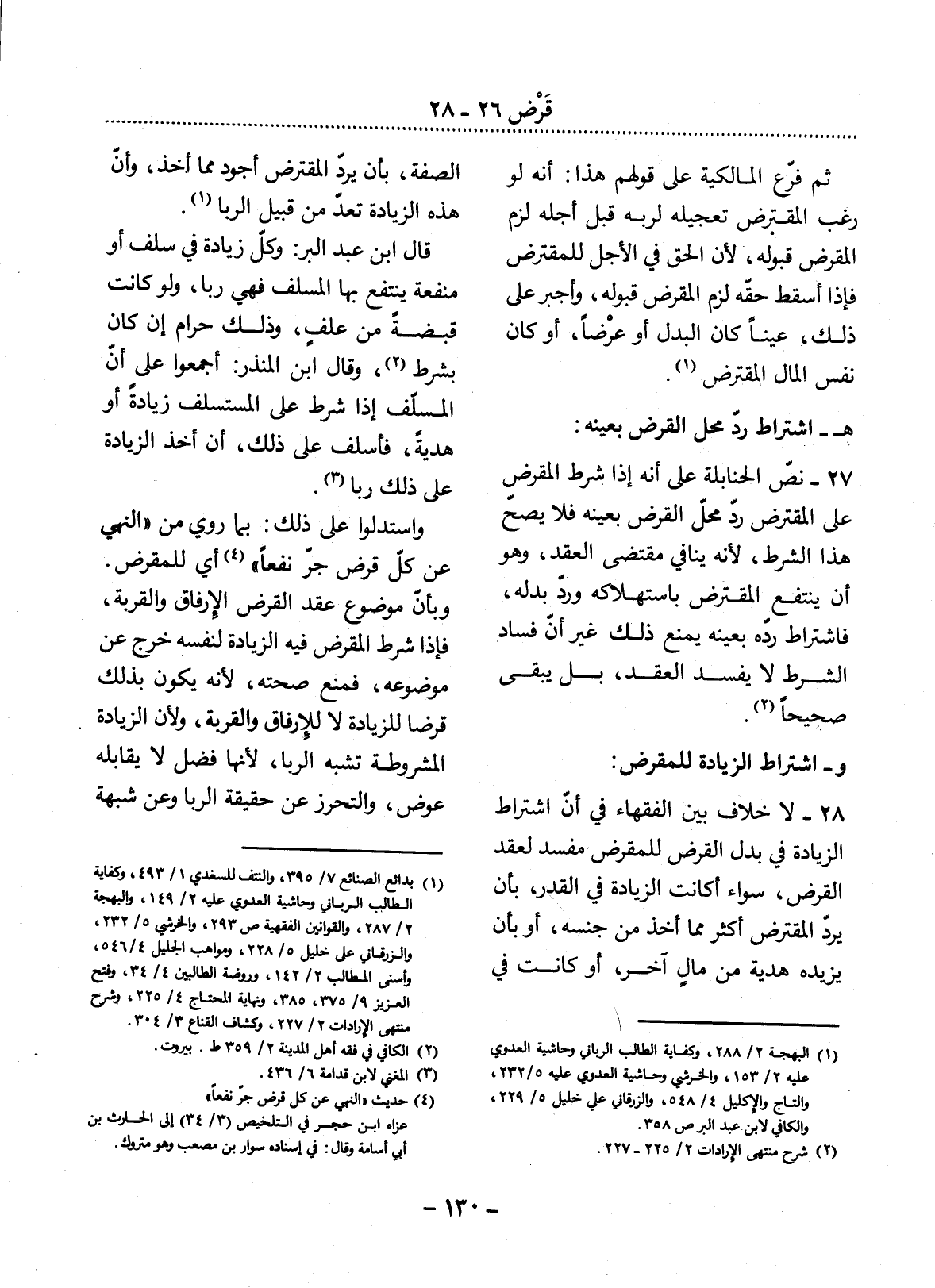 28 - لاَ خِلاَفَ بَيْنَ الْفُقَهَاءِ فِي أَنَّ اشْتِرَاطَ الزِّيَادَةِ فِي بَدَل الْقَرْضِ لِلْمُقْرِضِ مُفْسِدٌ لِعَقْدِ الْقَرْضِ، سَوَاءٌ أَكَانَتِ الزِّيَادَةُ فِي الْقَدْرِ، بِأَنْ يَرُدَّ الْمُقْتَرِضُ أَكْثَرَ مِمَّا أَخَذَ مِنْ جِنْسِهِ، أَوْ بِأَنْ يَزِيدَهُ هَدِيَّةً مِنْ مَالٍ آخَرَ، أَوْ كَانَتْ فِي
