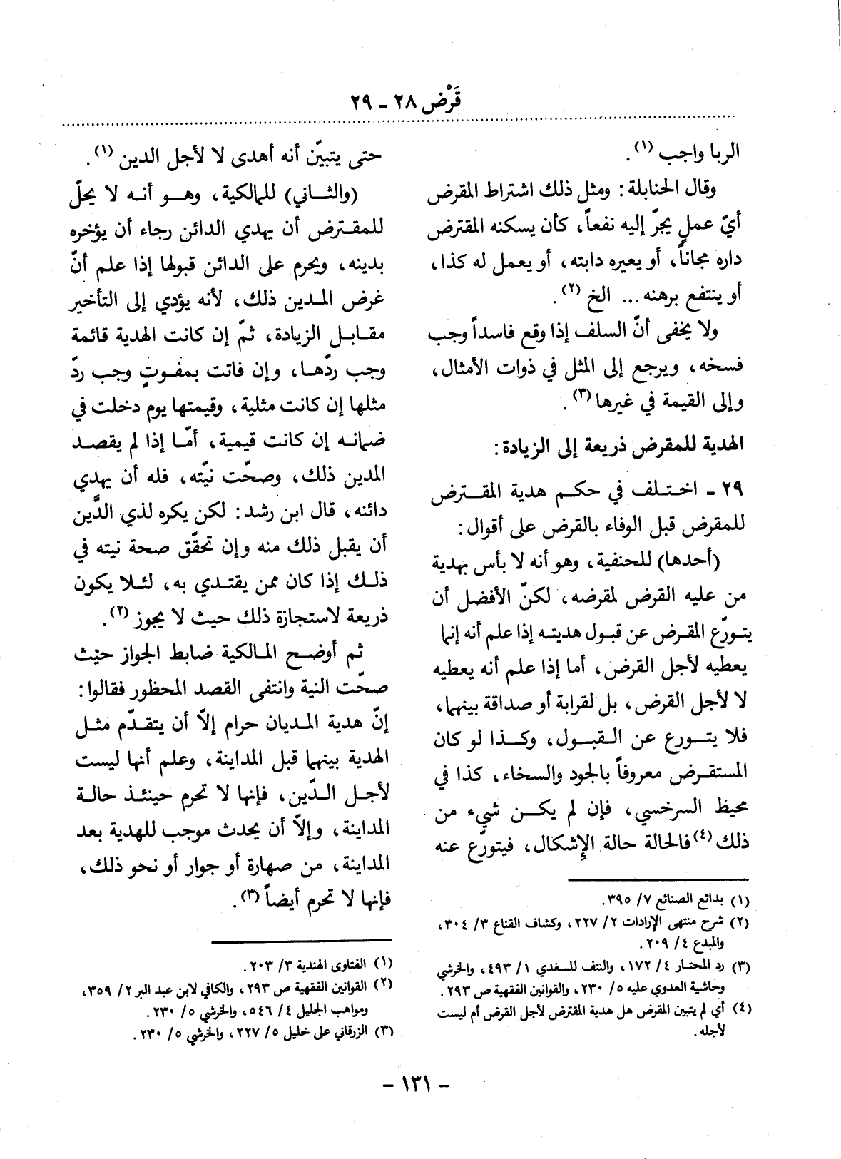 29 - اخْتُلِفَ فِي حُكْمِ هَدِيَّةِ الْمُقْتَرِضِ لِلْمُقْرِضِ قَبْل الْوَفَاءِ بِالْقَرْضِ عَلَى أَقْوَالٍ: