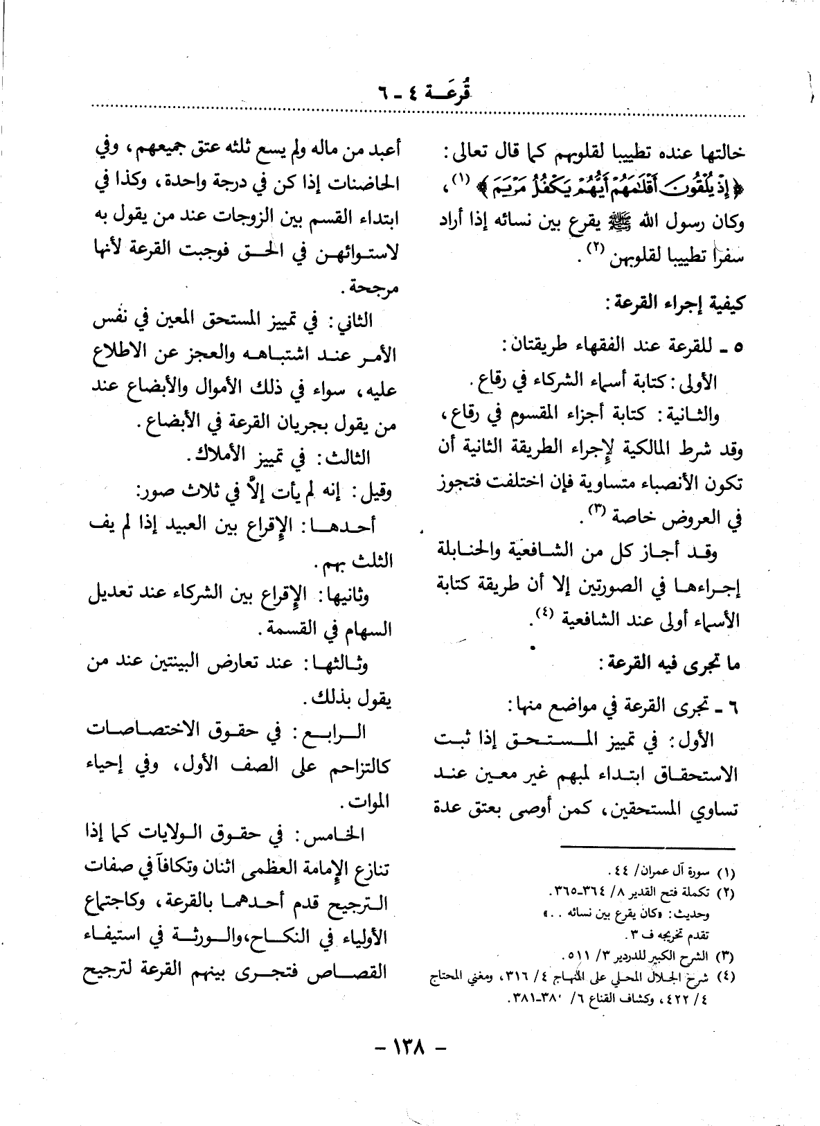 6 - تَجْرِي الْقُرْعَةُ فِي مَوَاضِعَ مِنْهَا: