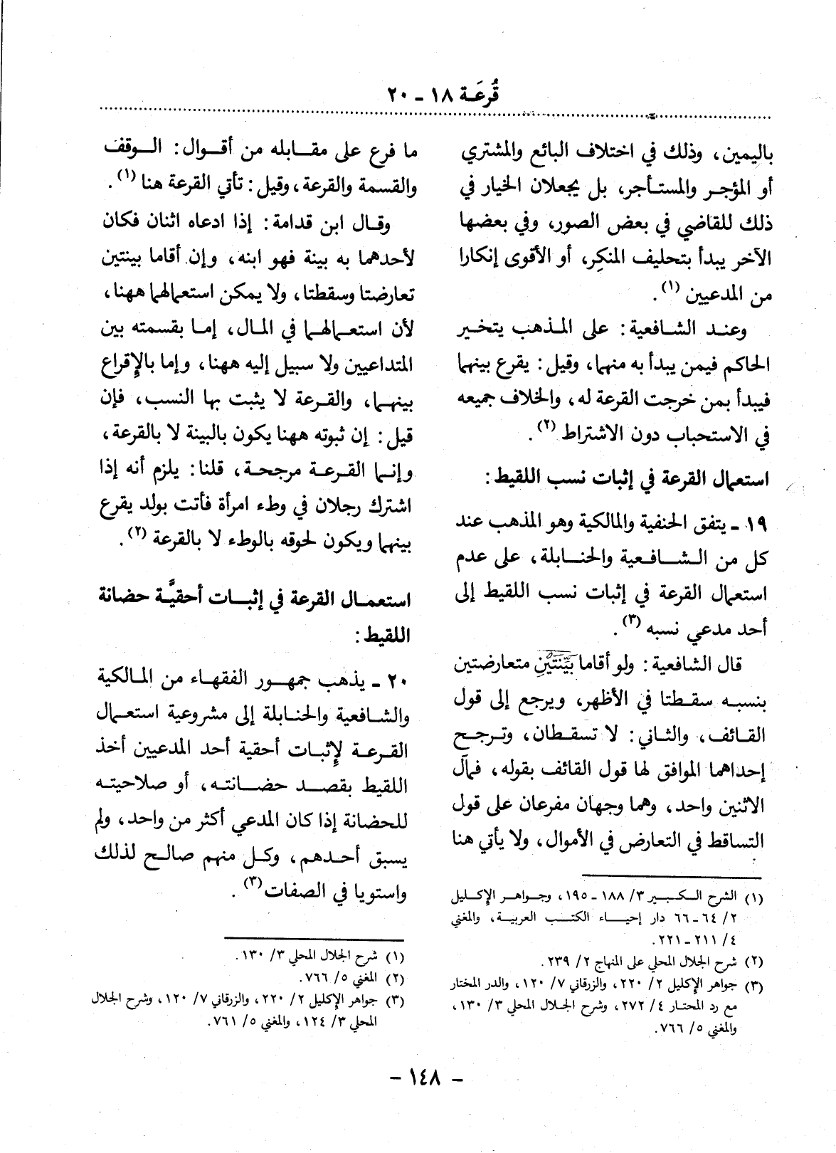 19 - يَتَّفِقُ الْحَنَفِيَّةُ وَالْمَالِكِيَّةُ وَهُوَ الْمَذْهَبُ عِنْدَ كُلٍّ مِنَ الشَّافِعِيَّةِ وَالْحَنَابِلَةِ، عَلَى عَدَمِ اسْتِعْمَال الْقُرْعَةِ فِي إِثْبَاتِ نَسَبِ اللَّقِيطِ إِلَى أَحَدِ مُدَّعِي نَسَبِهِ (3) .