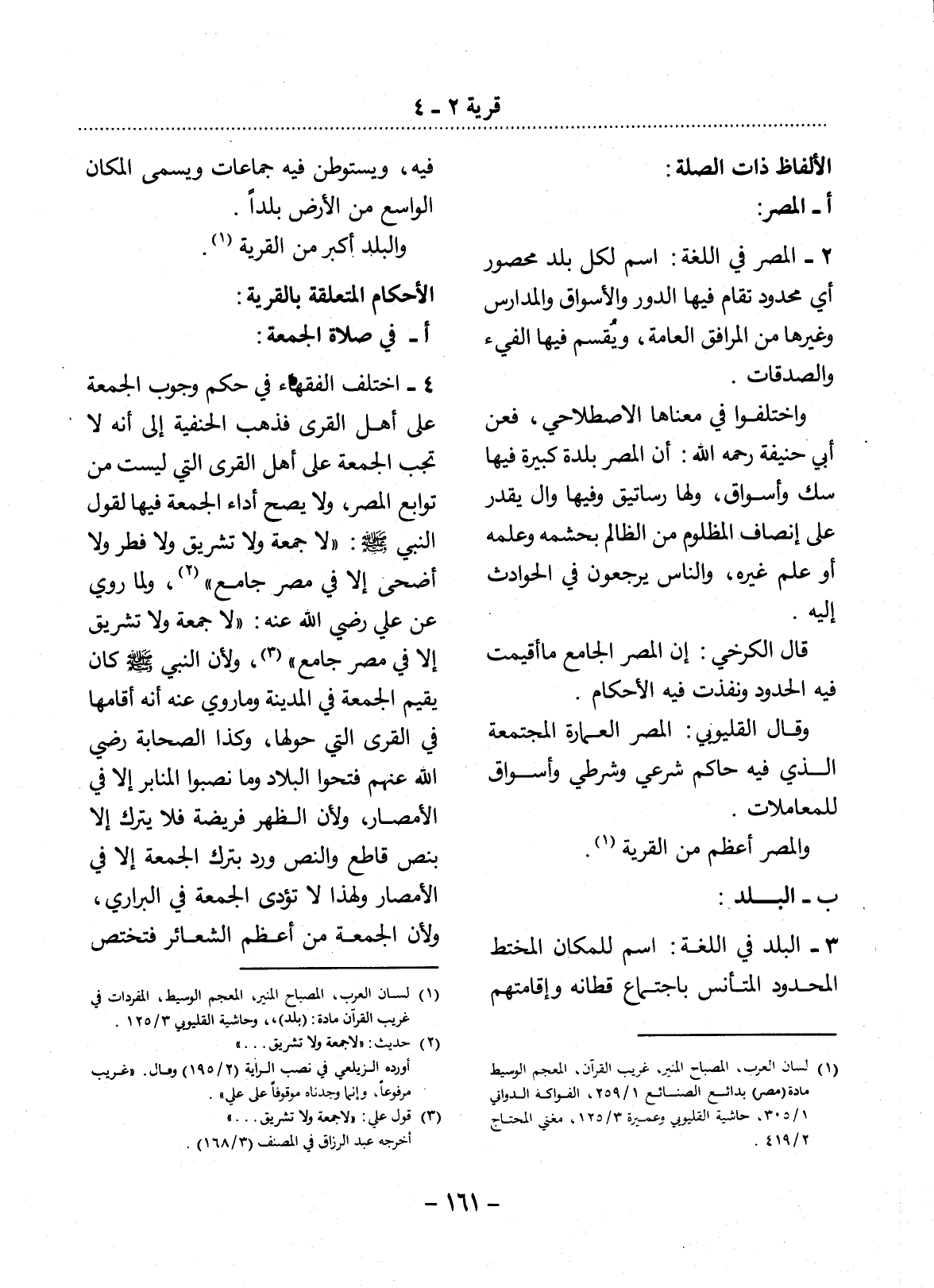 (1) لسان العرب، المصباح المنير، غريب القرآن، المعجم الوسيط مادة (مصر) ، بدائع الصنائع 1 / 259، الفواكه الدواني 1 / 305، حاشية القليوبي وعميرة 3 / 125، مغني المحتاج 2 / 419.