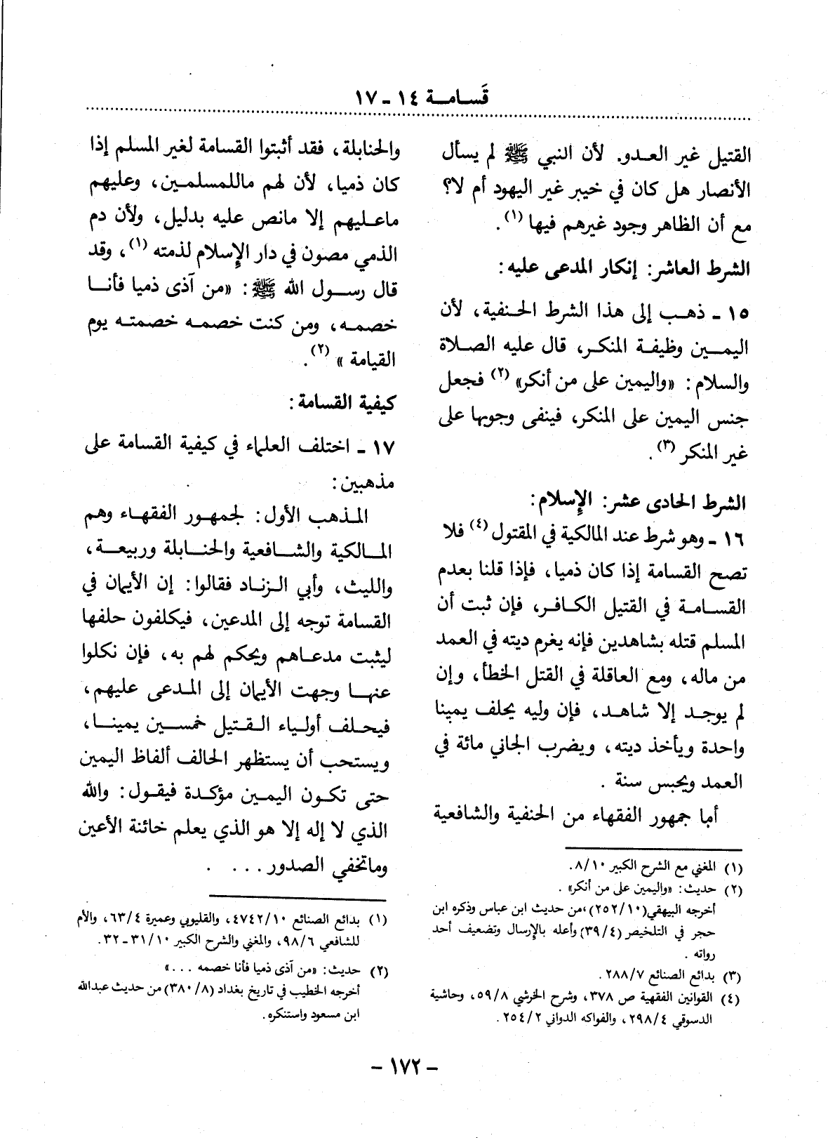 17 - اخْتَلَفَ الْعُلَمَاءُ فِي كَيْفِيَّةِ الْقَسَامَةِ عَلَى مَذْهَبَيْنِ: