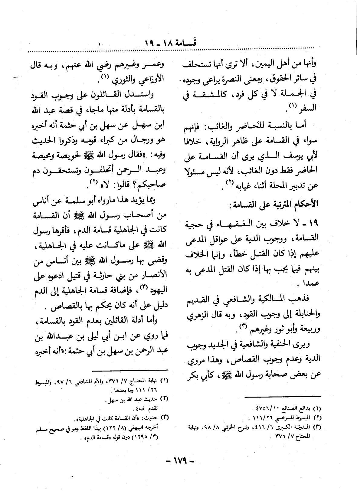 وَمِمَّا يُؤَيِّدُ هَذَا مَا رَوَاهُ أَبُو سَلَمَةَ عَنْ أُنَاسٍ مِنْ أَصْحَابِ رَسُول اللَّهِ صَلَّى اللَّهُ عَلَيْهِ وَسَلَّمَ أَنَّ الْقَسَامَةَ كَانَتْ فِي الْجَاهِلِيَّةِ قَسَامَةُ الدَّمِ، فَأَقَرَّهَا رَسُول اللَّهِ صَلَّى اللَّهُ عَلَيْهِ وَسَلَّمَ عَلَى مَا كَانَتْ عَلَيْهِ فِي الْجَاهِلِيَّةِ، وَقَضَى بِهَا رَسُول اللَّهِ صَلَّى اللَّهُ عَلَيْهِ وَسَلَّمَ بَيْنَ أُنَاسٍ مِنَ الأَْنْصَارِ مِنْ بَنِي حَارِثَةَ فِي قَتِيلٍ ادَّعَوْهُ عَلَى الْيَهُودِ (3) ، فَإِضَافَةُ قَسَامَةِ الْجَاهِلِيَّةِ إِلَى الدَّمِ دَلِيلٌ عَلَى أَنَّهُ كَانَ يُحْكَمُ بِهَا بِالْقِصَاصِ.