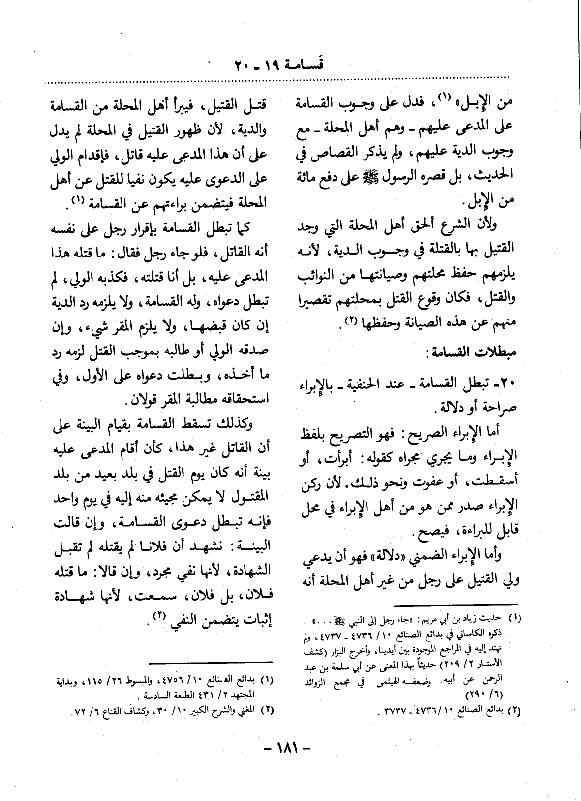 مِنَ الإِْبِل (1) ، فَدَل عَلَى وُجُوبِ الْقَسَامَةِ عَلَى الْمُدَّعَى عَلَيْهِمْ - وَهُمْ أَهْل الْمَحَلَّةِ - مَعَ وُجُوبِ الدِّيَةِ عَلَيْهِمْ، وَلَمْ يَذْكُرِ الْقِصَاصَ فِي الْحَدِيثِ، بَل قَصَرَهُ الرَّسُول صَلَّى اللَّهُ عَلَيْهِ وَسَلَّمَ عَلَى دَفْعِ مِائَةٍ مِنَ الإِْبِل.