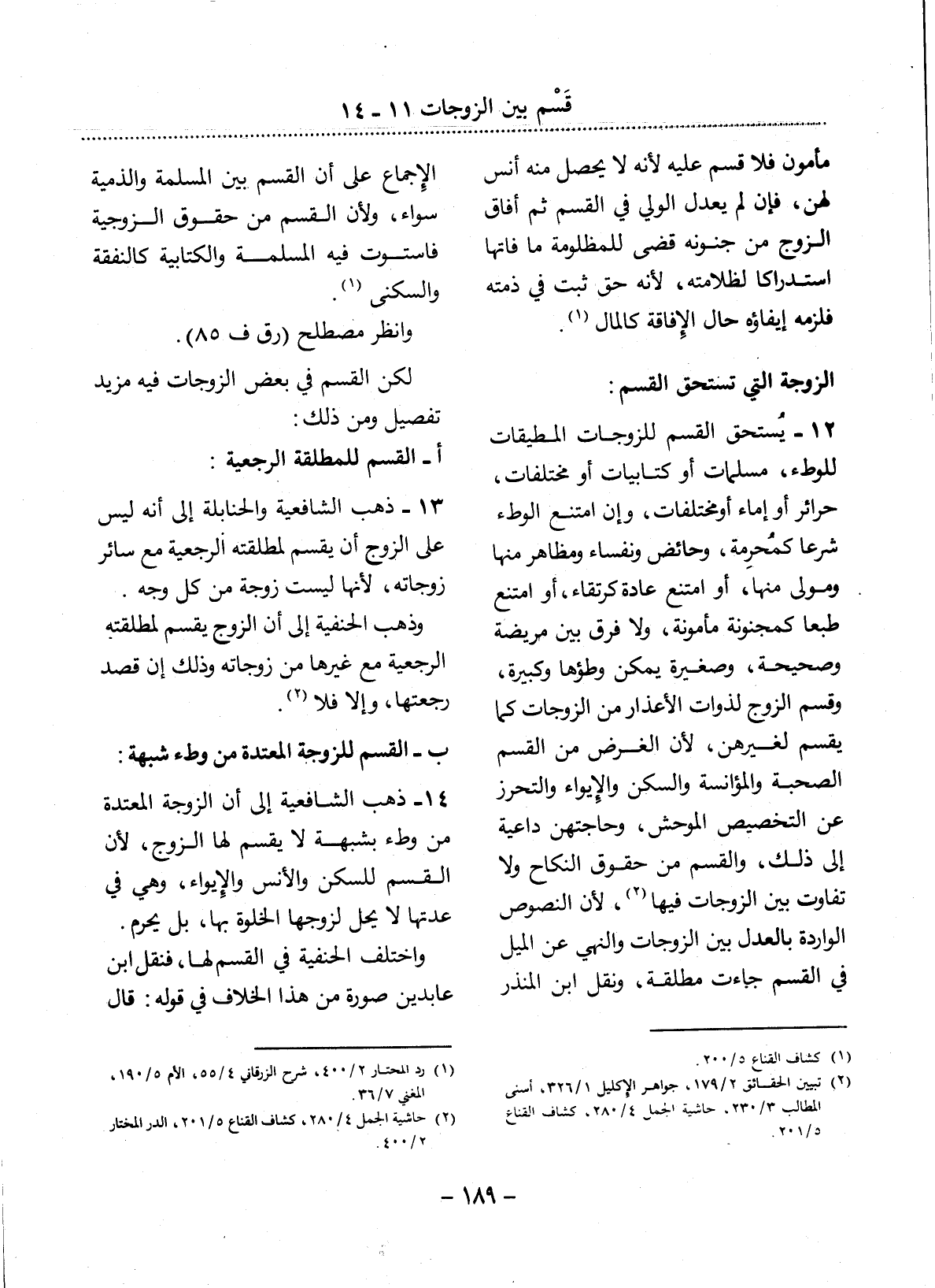 (2) حاشية الجمل 4 / 280، كشاف القناع 5 / 201، الدر المختار 2 / 400.