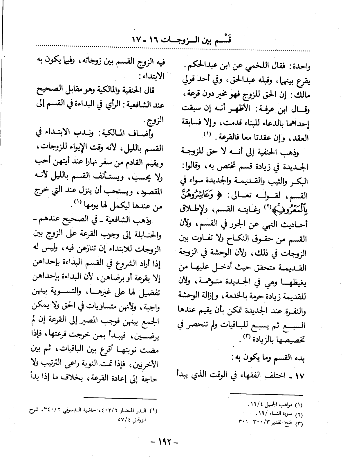 (1) الدر المختار 2 / 402، حاشية الدسوقي 2 / 340، شرح الزرقاني 4 / 57.