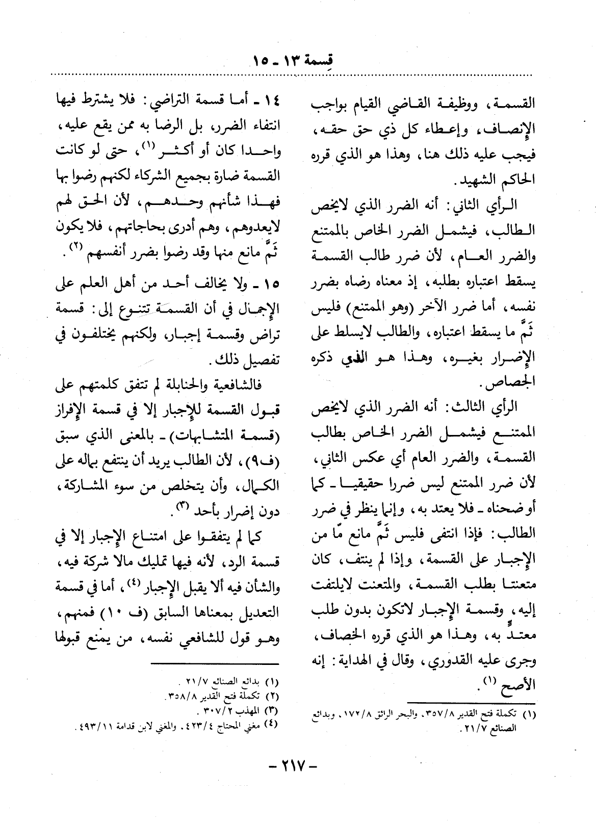 (1) تكملة فتح القدير 8 / 357، والبحر الرائق 8 / 172، وبدائع الصنائع 7 / 21.