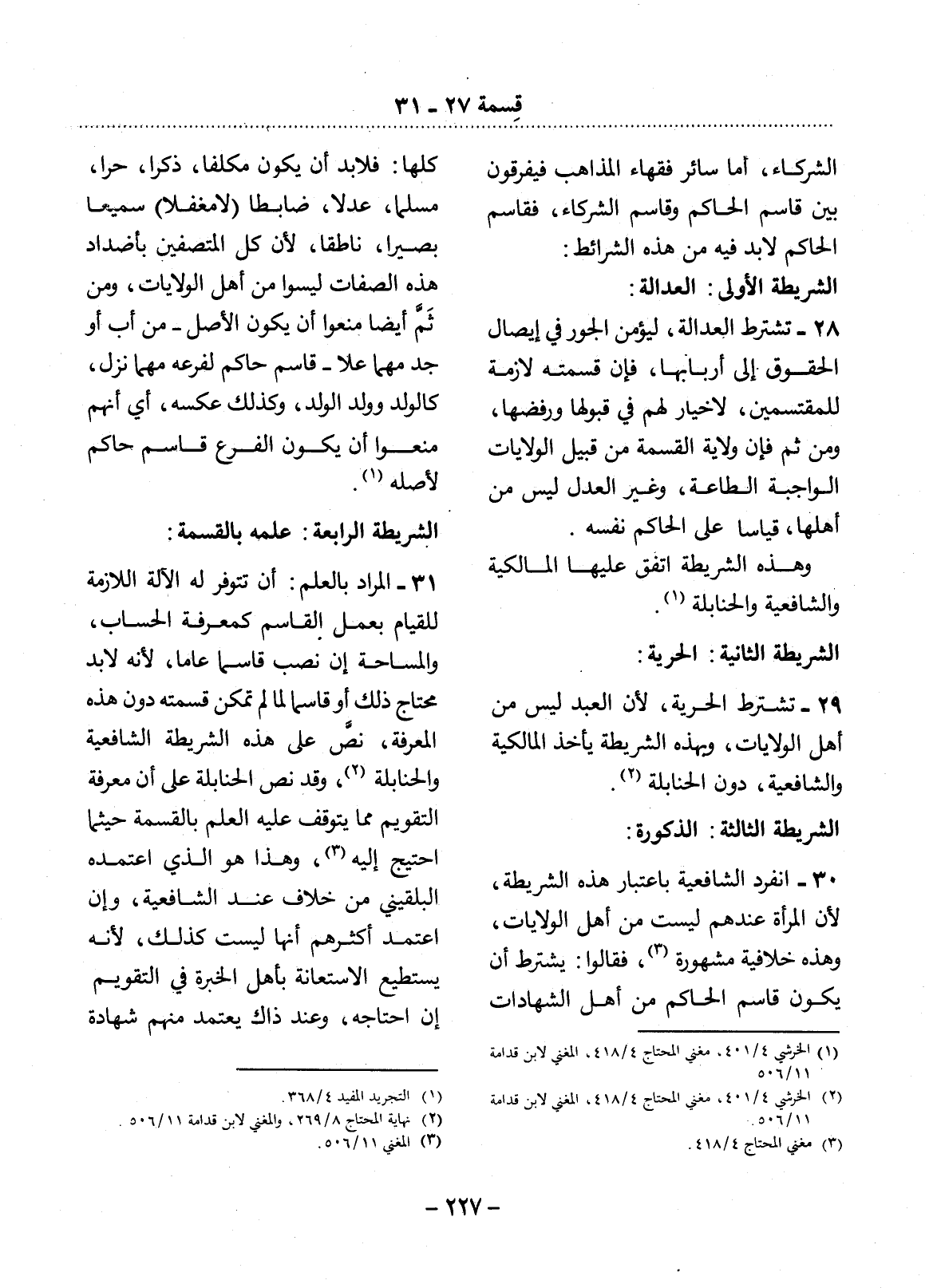 الشَّرِيطَةُ الرَّابِعَةُ: عِلْمُهُ بِالْقِسْمَةِ:
