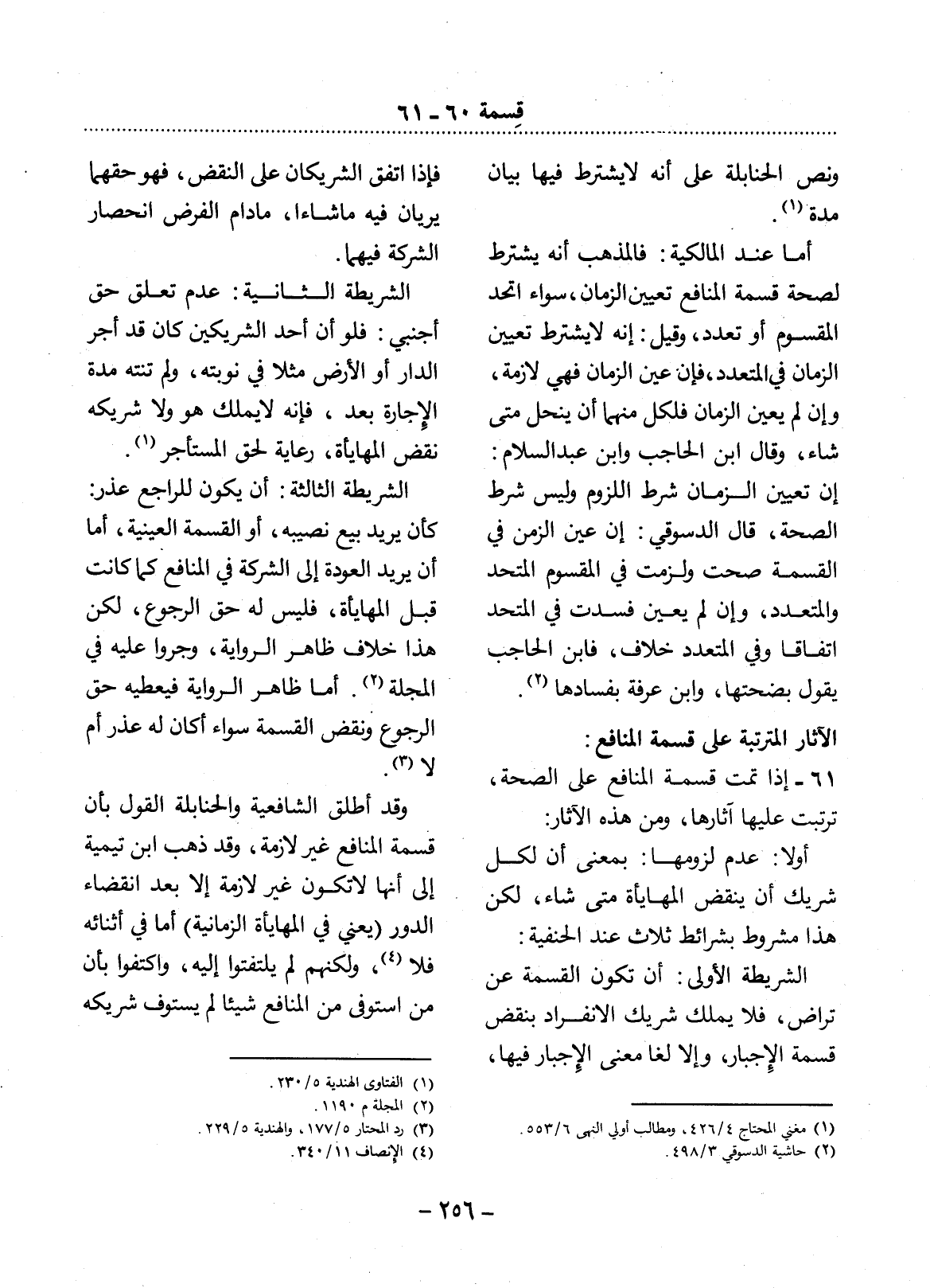 61 - إِذَا تَمَّتْ قِسْمَةُ الْمَنَافِعِ عَلَى الصِّحَّةِ، تَرَتَّبَتْ عَلَيْهَا آثَارُهَا، وَمِنْ هَذِهِ الآْثَارِ: