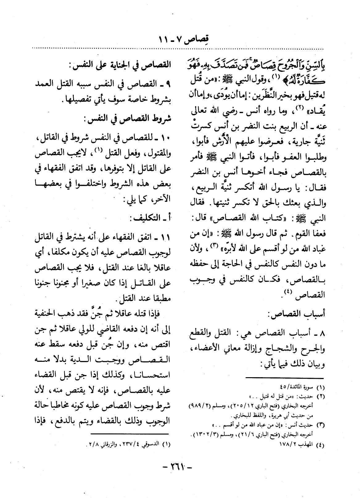 9 - الْقِصَاصُ فِي النَّفْسِ سَبَبُهُ الْقَتْل الْعَمْدُ بِشُرُوطٍ خَاصَّةٍ سَوْفَ يَأْتِي تَفْصِيلُهَا.