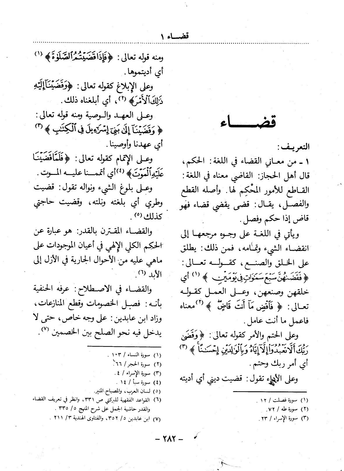 (6) القواعد الفقهية للبركتي ص 331، وانظر في تعريف القضاء والقدر حاشية الجمل على شرح المنهج 5 / 335.