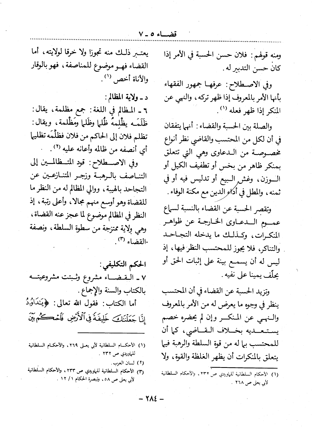 (3) الأحكام السلطانية للماوردي ص 233، والأحكام السلطانية لأبي يعلى ص 58، وتبصرة الحكام 1 / 12.