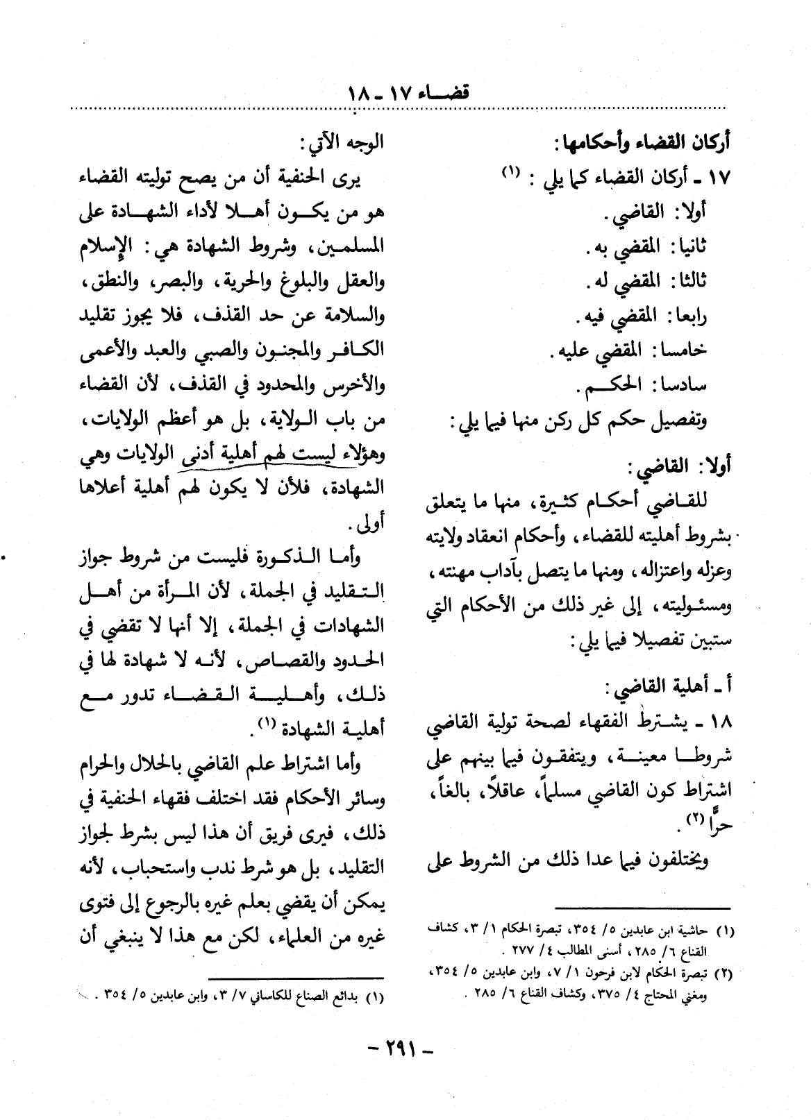 (2) تبصرة الحكام لابن فرحون 1 / 7، وابن عابدين 5 / 354، ومغني المحتاج 4 / 375، وكشاف القناع 6 / 285.