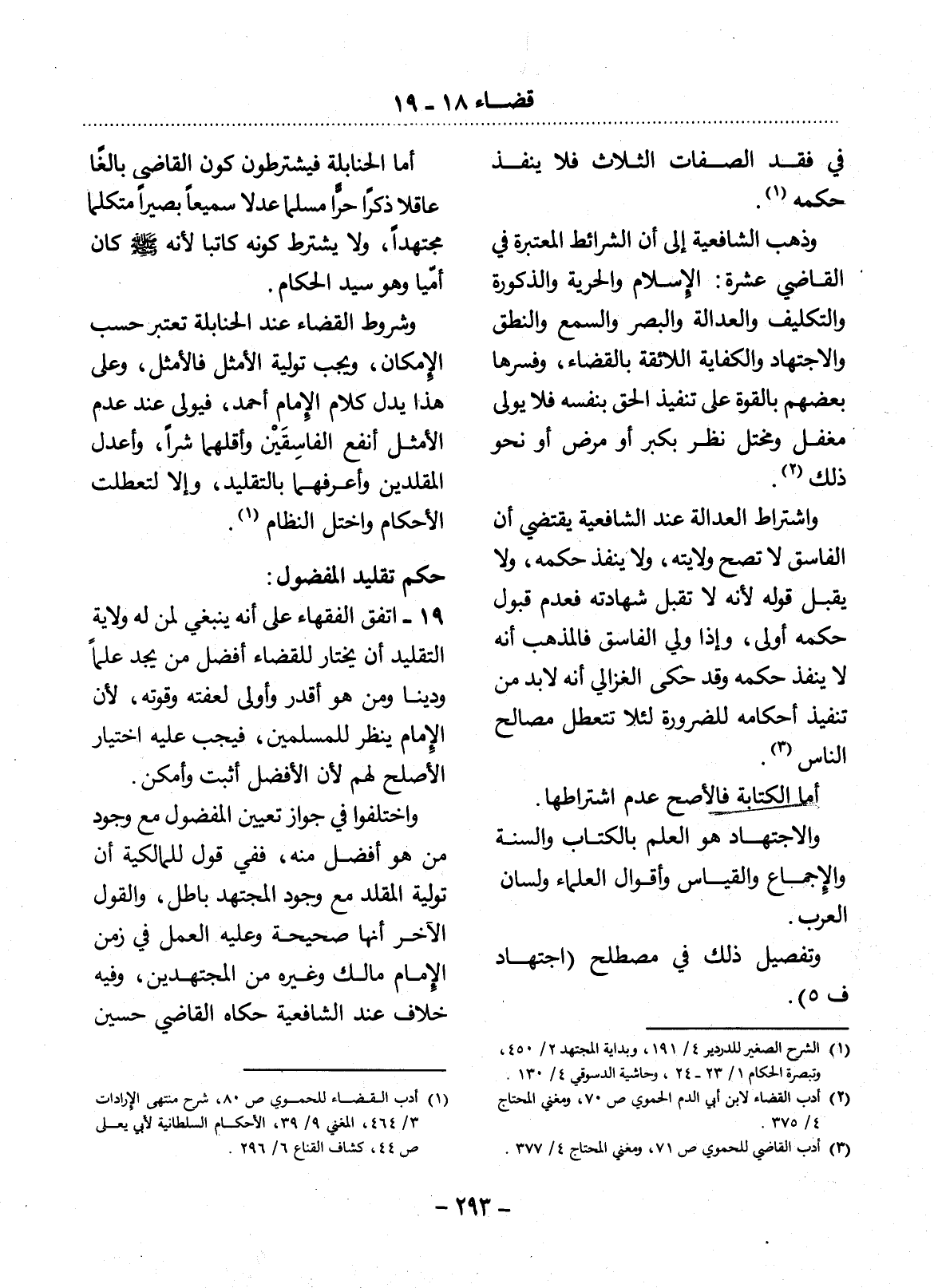 (1) أدب القضاء للحموي ص 80، شرح منتهى الإرادات 3 / 464، المغني 9 / 39، الأحكام السلطانية لأبي يعلى ص 44، كشاف القناع 6 / 296.