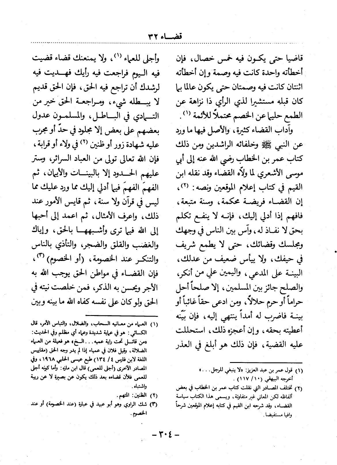 (2) تختلف المصادر التي نقلت كتاب عمر بن الخطاب في بعض ألفاظه لكن المعالي غير متفاوتة، ويسمى هذا الكتاب سياسة القضاء، وقد شرحه ابن القيم في كتابه إعلام الموقعين شرحًا وافيًا مستفيضًا.