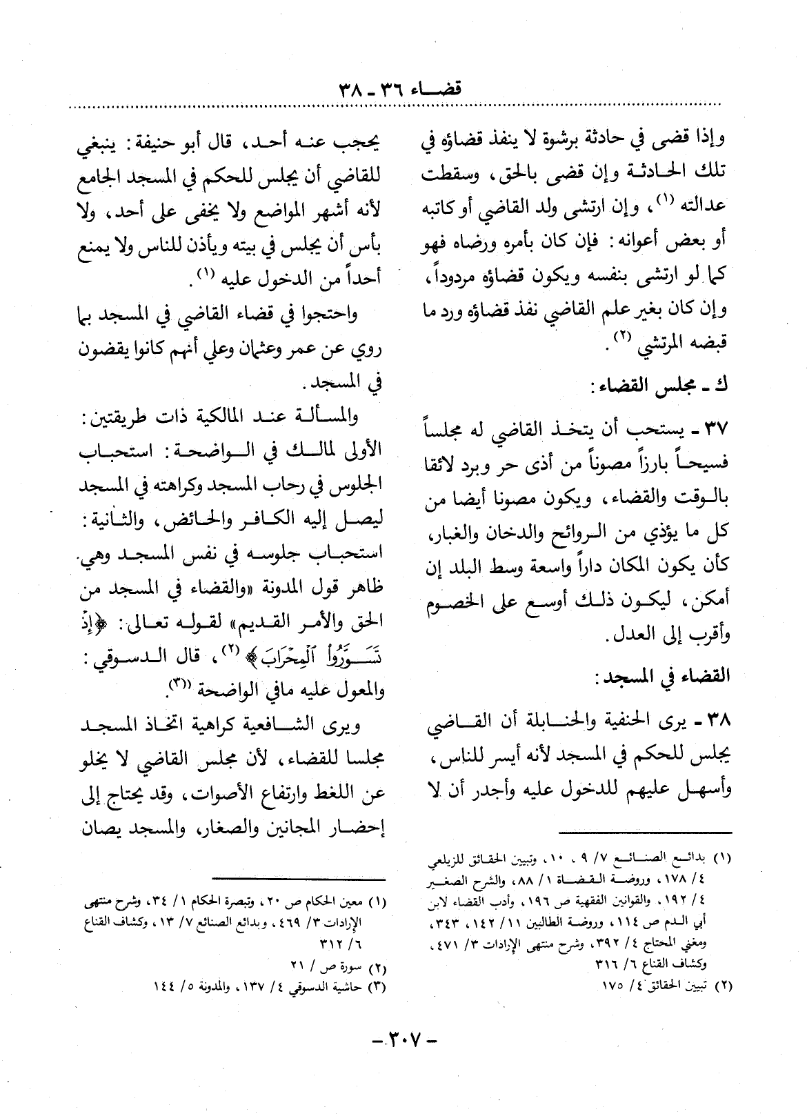 (1) معين الحكام ص 20، وتبصرة الحكام 1 / 34، وشرح منتهى الإرادات 3 / 469، وبدائع الصنائع 7 / 13، وكشاف القناع 6 / 312.