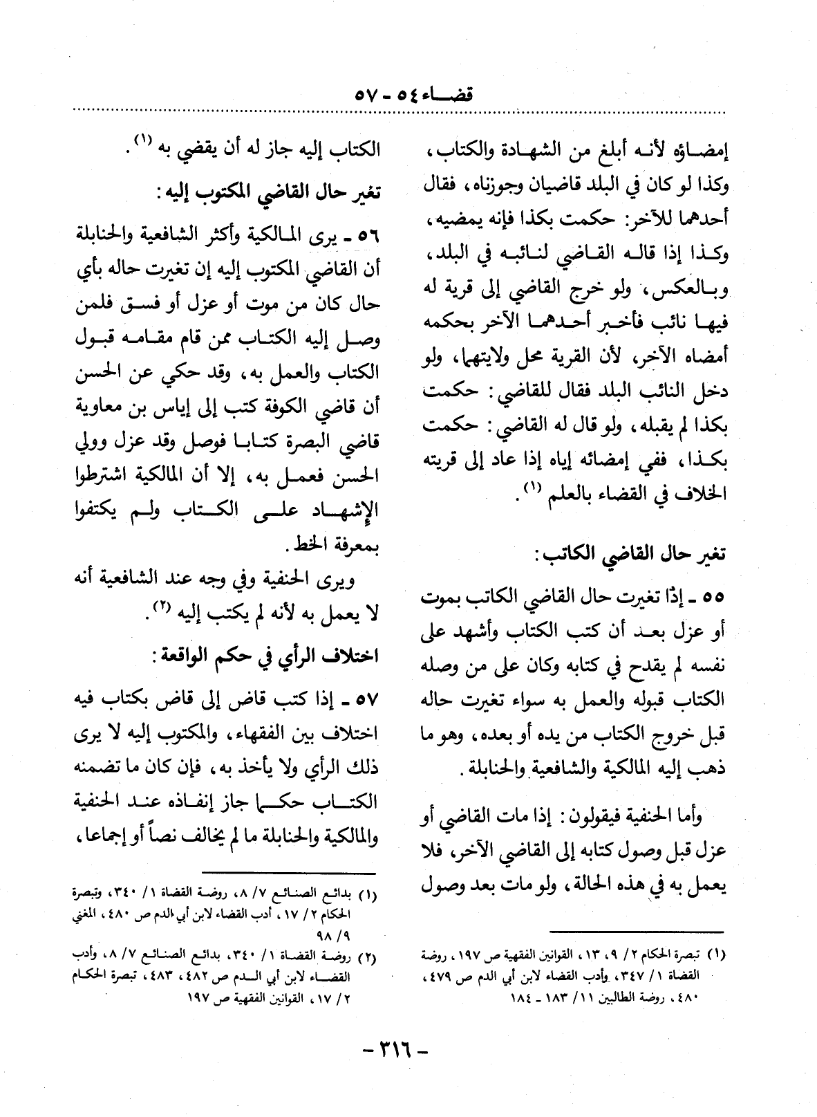 (2) روضة القضاة 1 / 340، بدائع الصنائع 7 / 8، وأدب القضاء لابن أبي الدم ص 482، 483، تبصرة الحكام 2 / 17، القوانين الفقهية ص 197.
