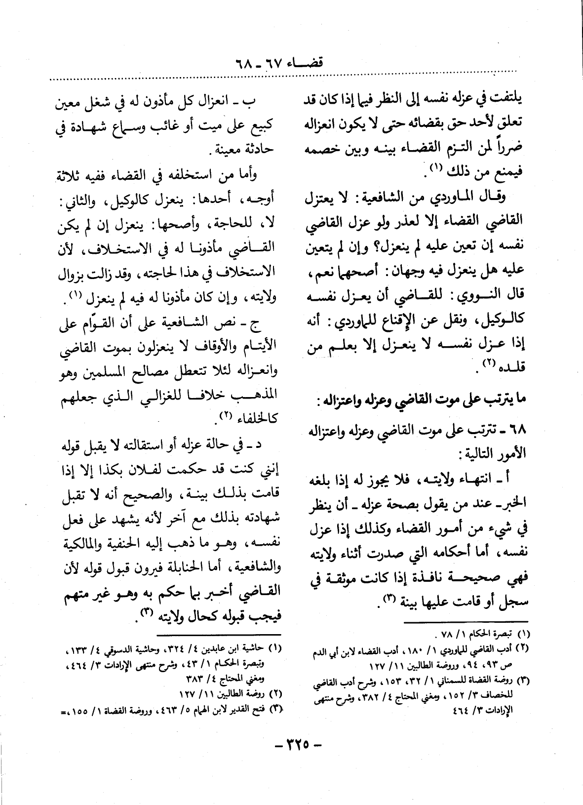 (3) روضة القضاة للسمناني 1 / 32، 153، وشرح أدب القاضي للخصاف 3 / 152، ومغني المحتاج 4 / 382، وشرح منتهى الإرادات 3 / 464.