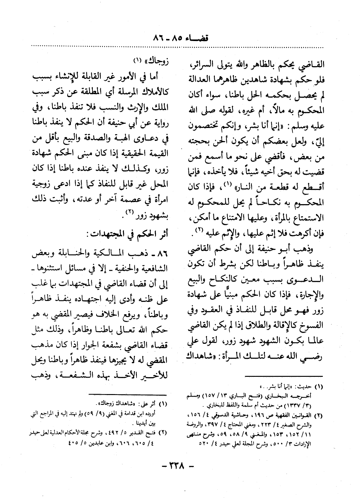 (1) حديث: " إنما أنا بشر. . " أخرجه البخاري (فتح الباري 13 / 157) ومسلم (3 / 1337) من حديث أم سلمة واللفظ للبخاري.