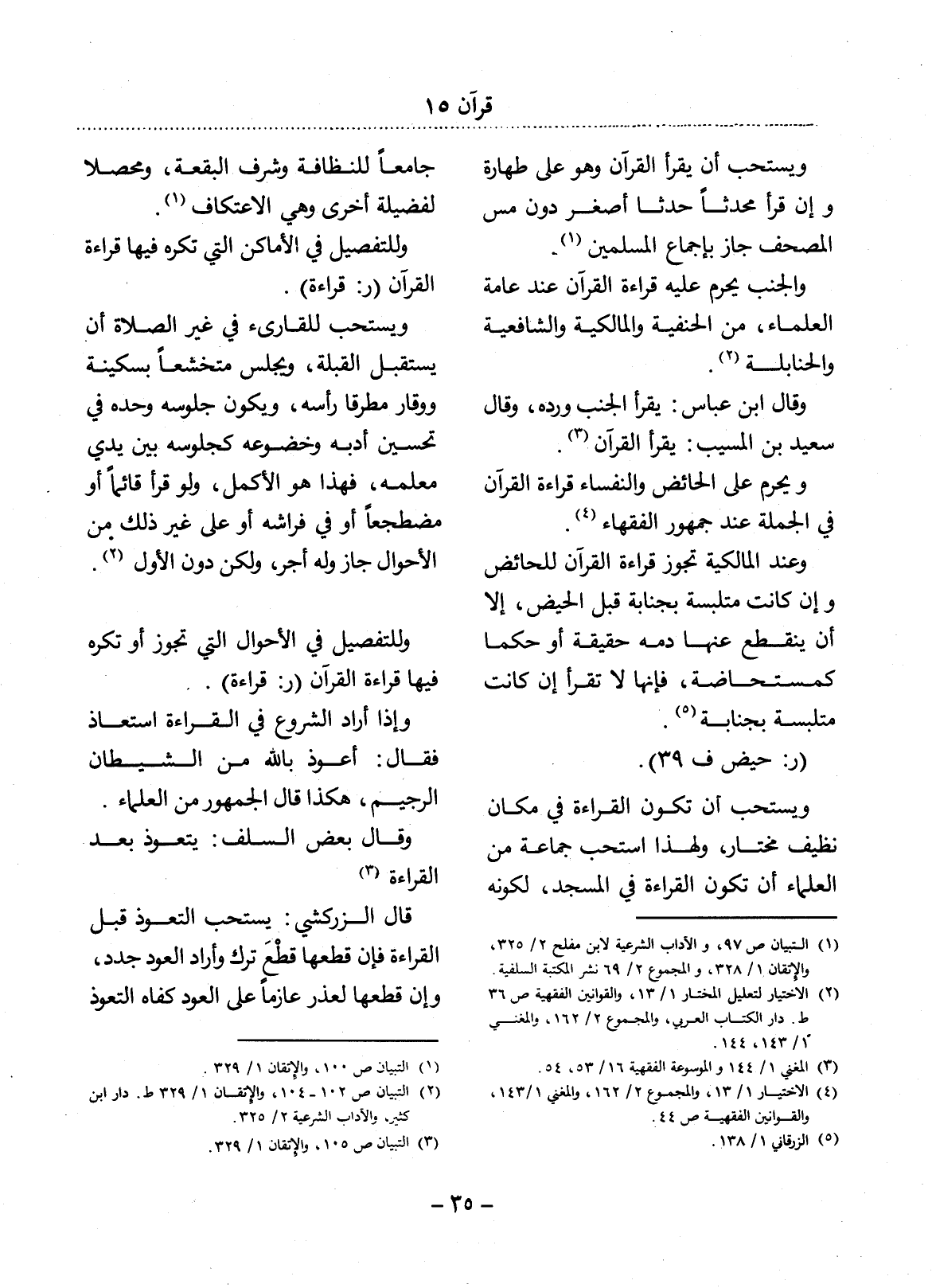 (1) التبيان ص 97، والآداب الشرعية لابن مفلح 2 / 325، والإتقان 1 / 328، والمجموع 2 / 69 نشر المكتبة السلفية.