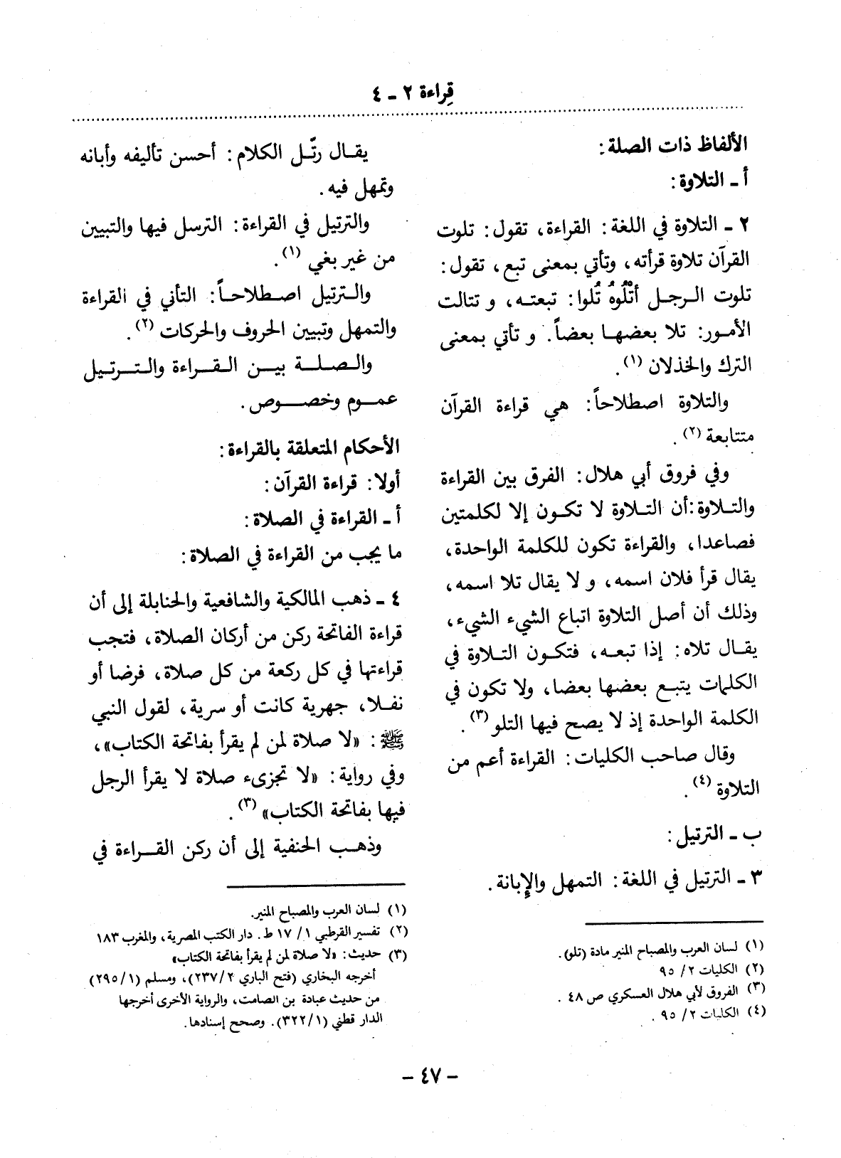 الأَْحْكَامُ الْمُتَعَلِّقَةُ بِالْقِرَاءَةِ